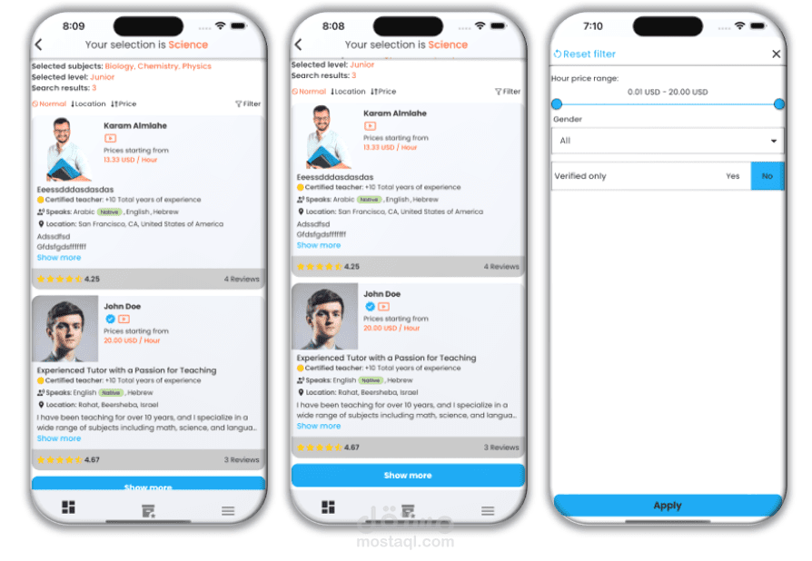 The app is designed for users seeking private lessons and looking to find a suitable tutor. The app allows users to search for private tutors based on various parameters such as subject, price, location, and more. The app was developed using React Native CLI, which allows for efficient cross-platform app development for both iOS and Android.