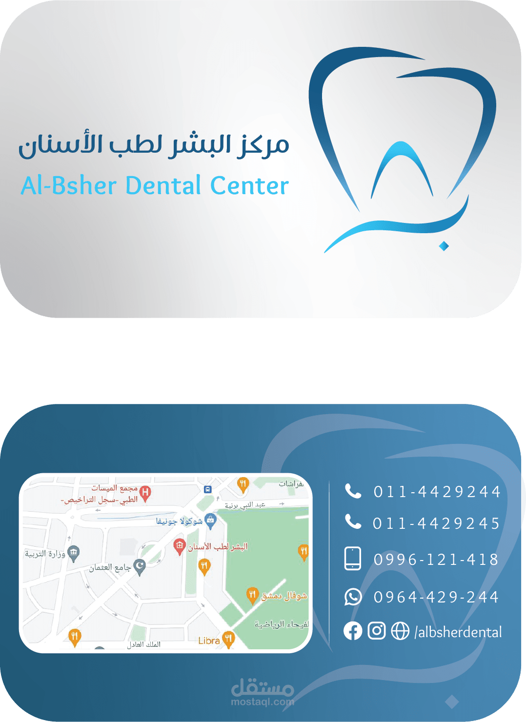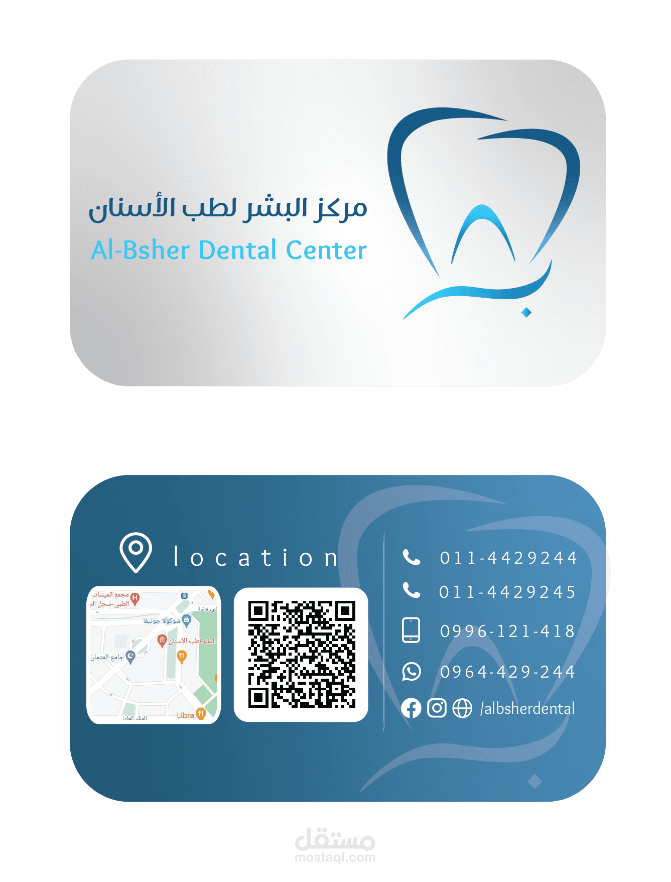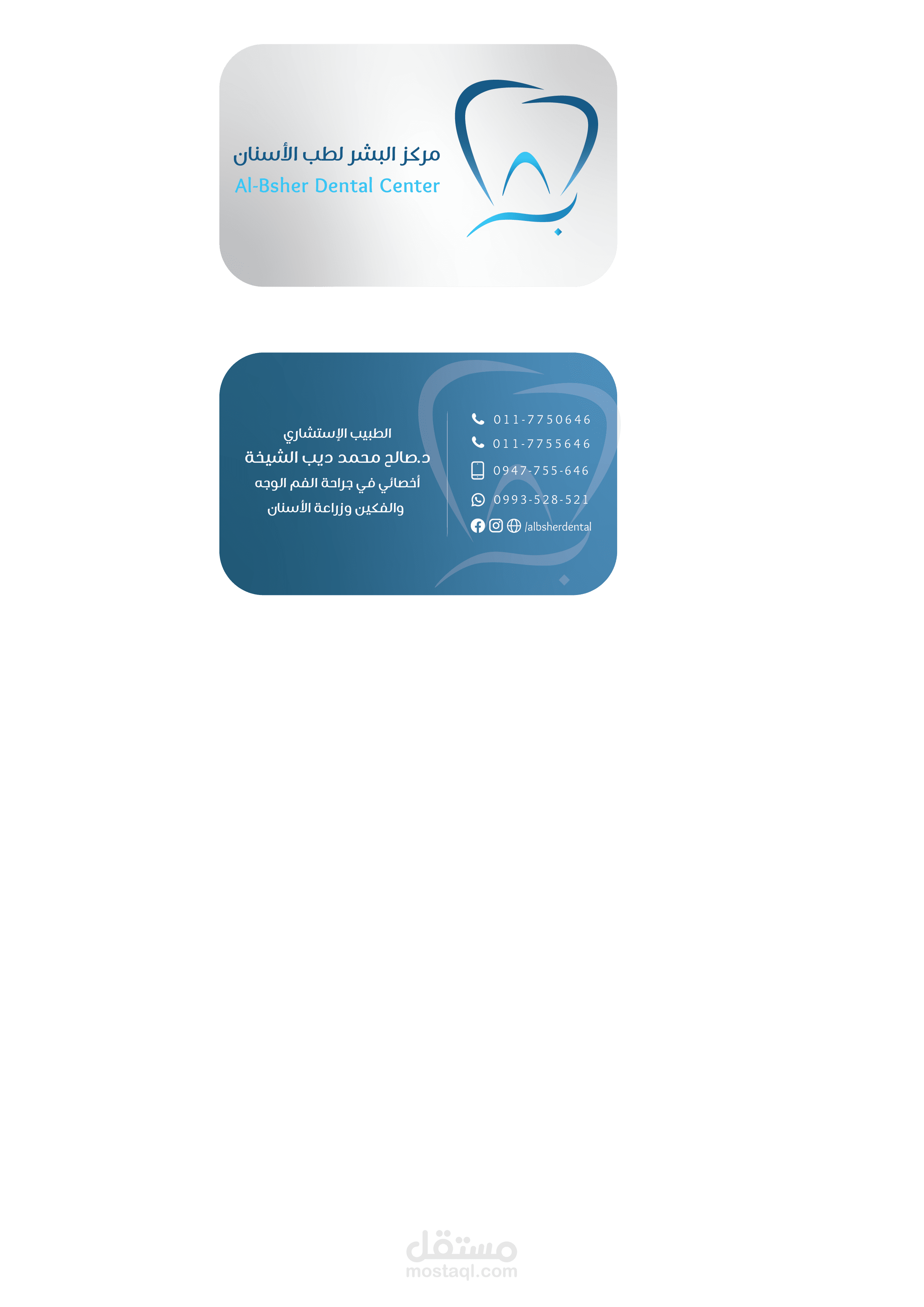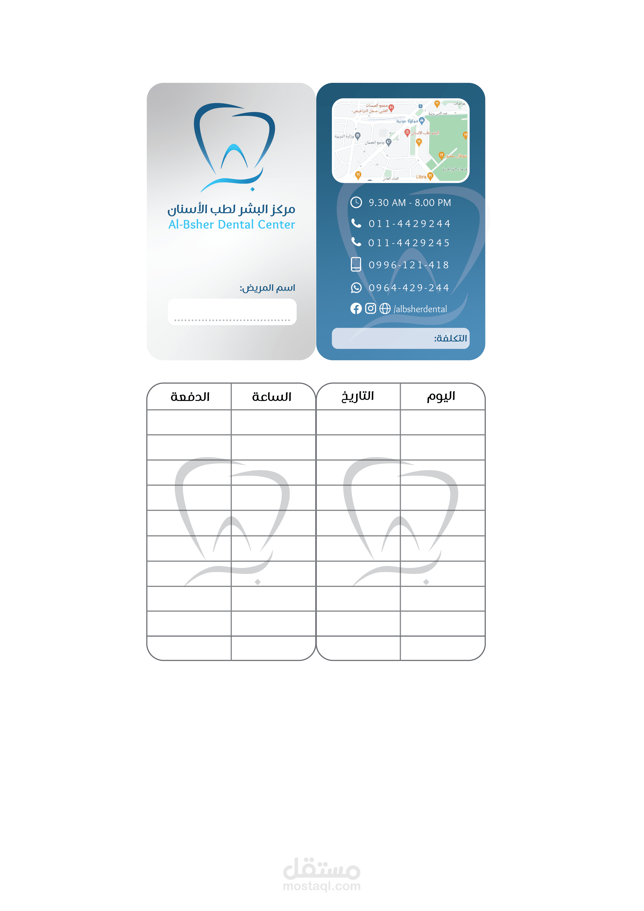 كرت فيزيت مع بطاقات معالجة لمركز البشر لطب الأسنان