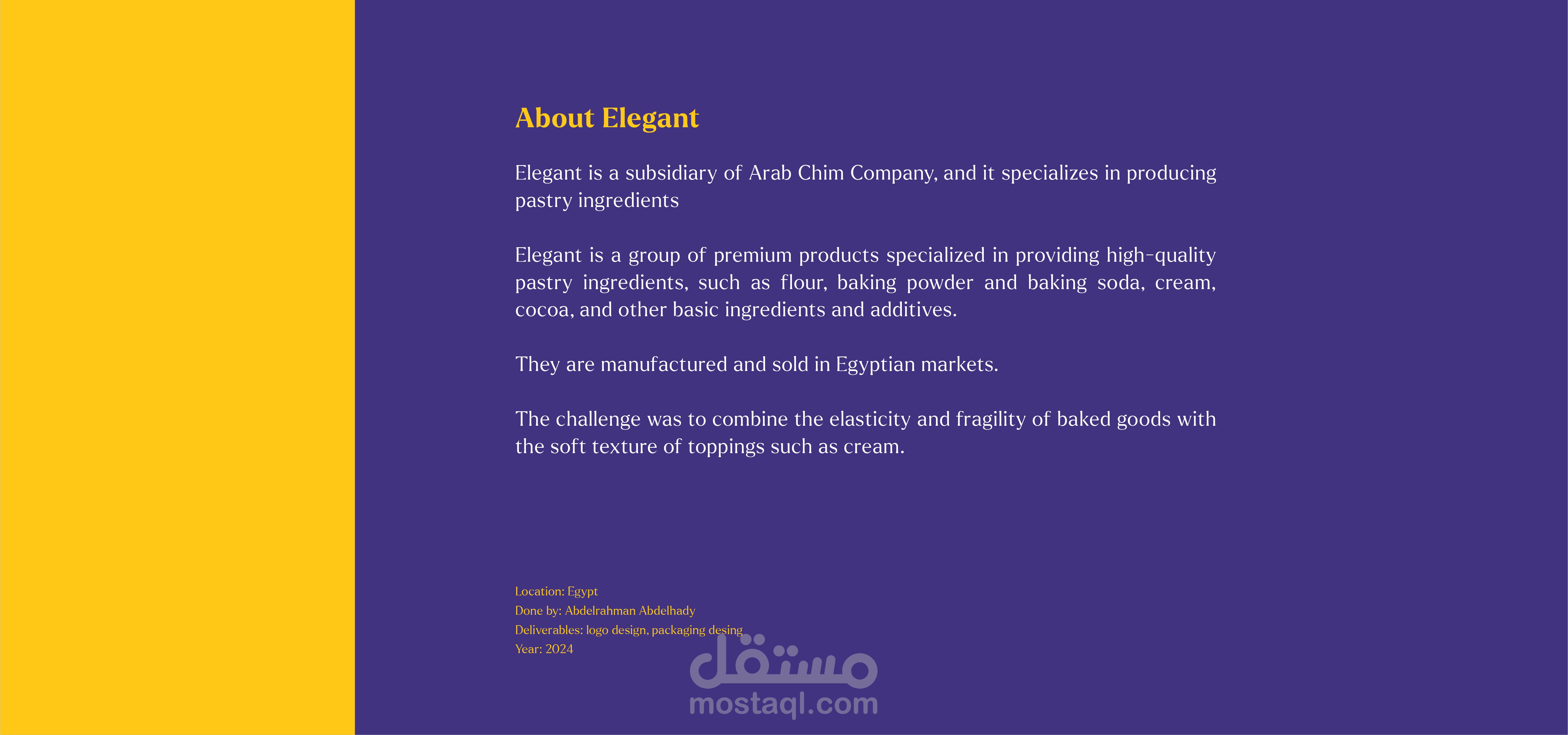 إليجانت هي مجموعة من المنتجات المتميزة المتخصصة في تقديم مكونات المعجنات عالية الجودة، مثل الدقيق، البيكنج باودر وصودا الخبز، الكريمة، الكاكاو، وغيرها من المكونات الأساسية والمواد المضافة.