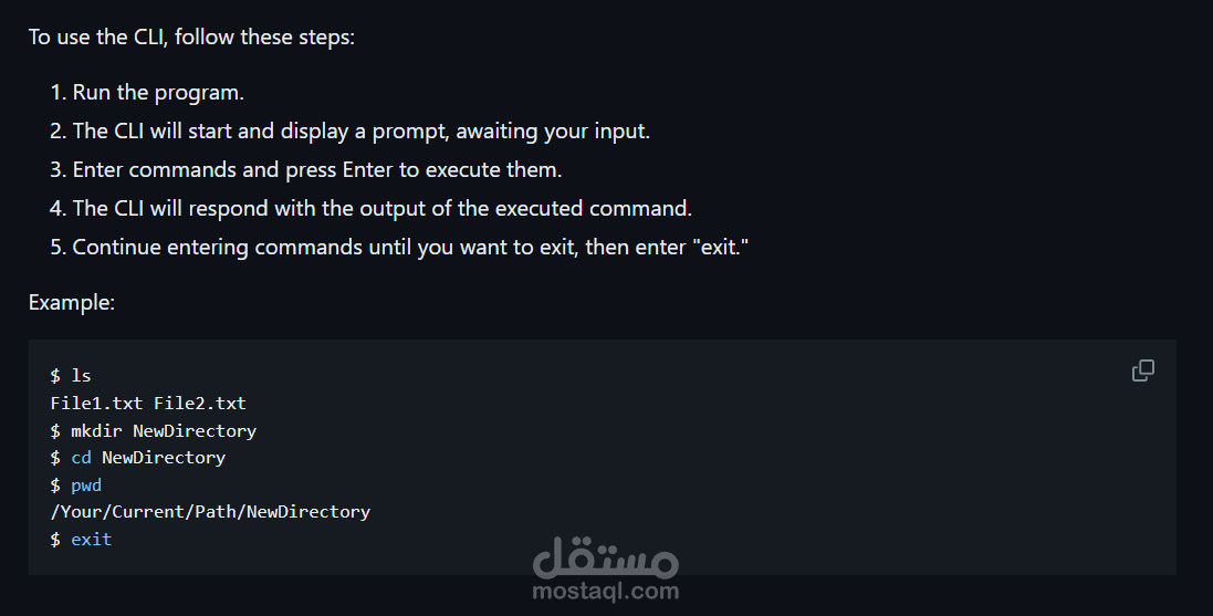 This Command Line Interpreter (CLI) is a simple text-based interface for interacting with your operating system. Users can input commands through the keyboard, and the CLI will parse and execute these commands. The CLI will continue to accept user commands until the user enters "exit," at which point the CLI will terminate
