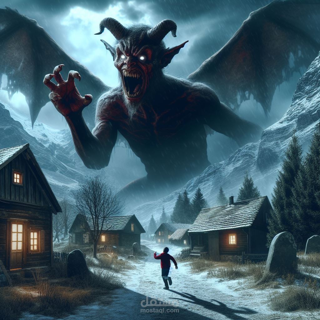 فجأة، اهتزت الأرض. ظهرت شكلًا غامضًا في وسط الدائرة. كانت عيناه حمراء مشتعلة، وجلده أسود كالليل. كان الشيطان هنا، أمام عبد الرحمن.