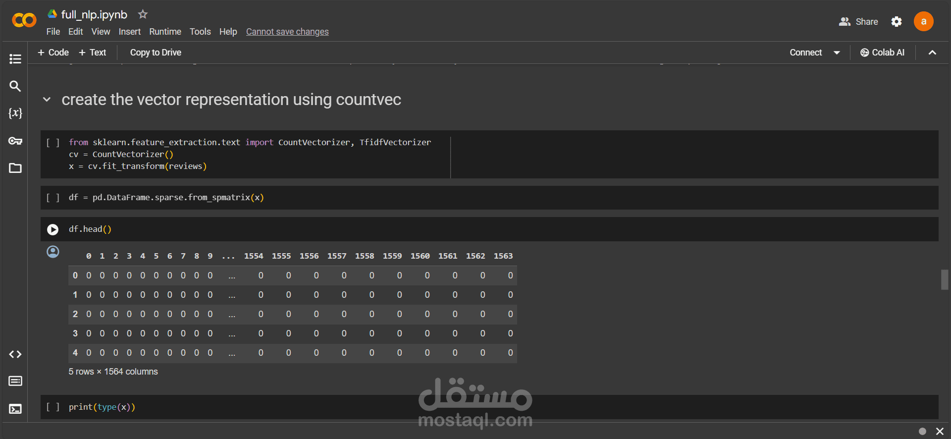 - استخراج سمات مثل تردد الكلمات ونقاط TF-IDF أو تضمينات الكلمات.