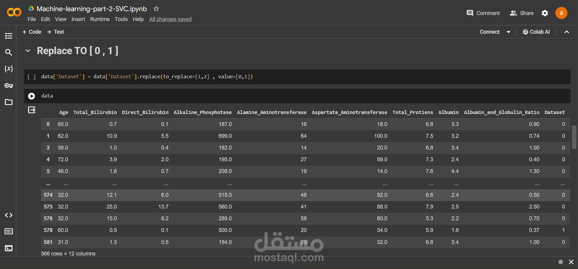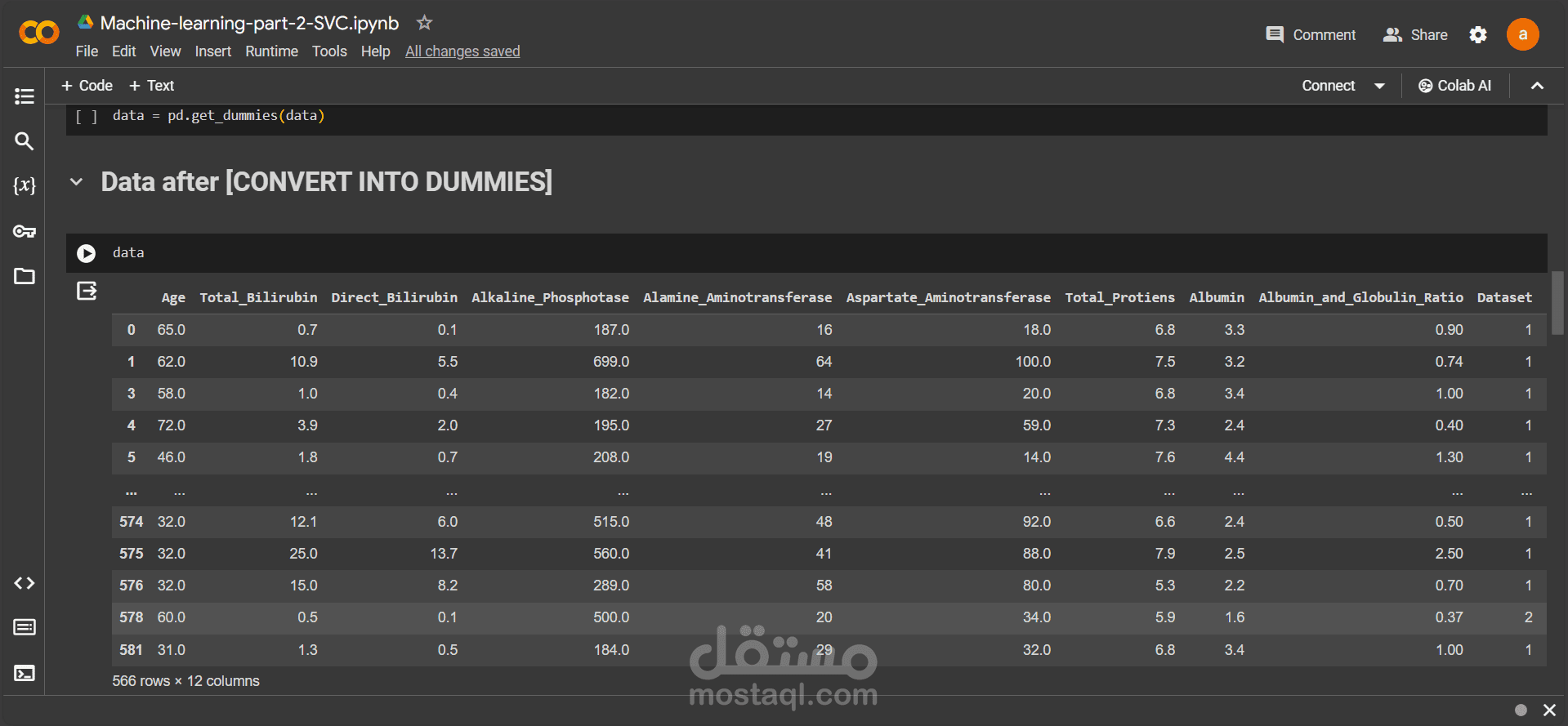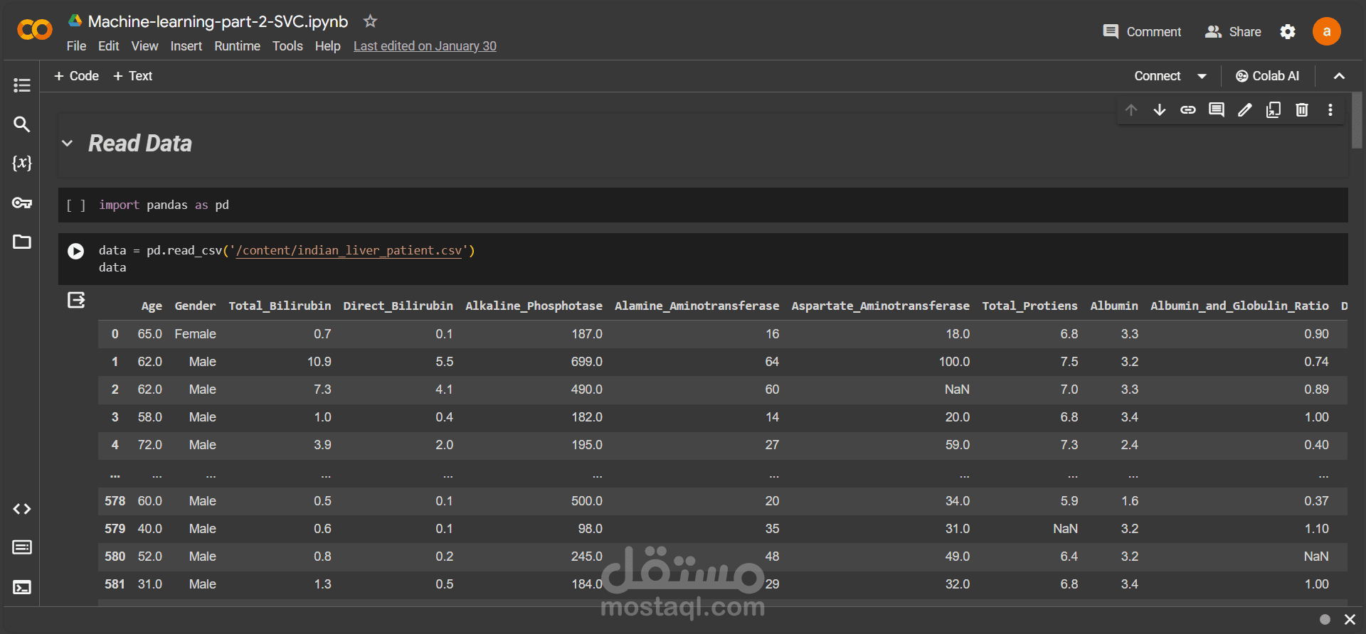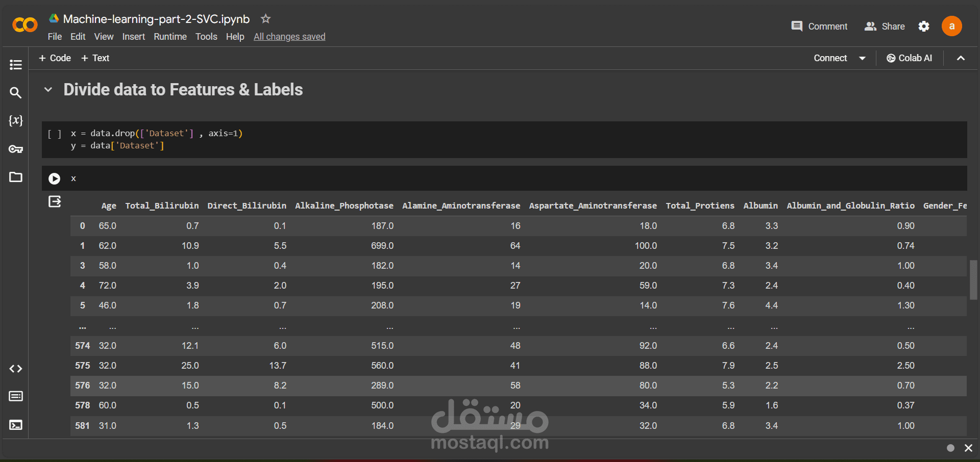 مجموعة بيانات "Indian Liver Patient" تستخدم في تطوير نماذج توقعية لتشخيص أمراض الكبد في المرضى الهنود، بما في ذلك العمر، والجنس، ومستويات الإنزيمات الكبدية، والبيليروبين. يتم استخدام التعلم الآلي لتدريب نماذج التنبؤ بمرض الكبد لتحسين رعاية المرضى واتخاذ القرارات الطبية الصحيحة و قد تم استخدام الmachine learning SVC و وصلت نسبة الmodel الي 88%