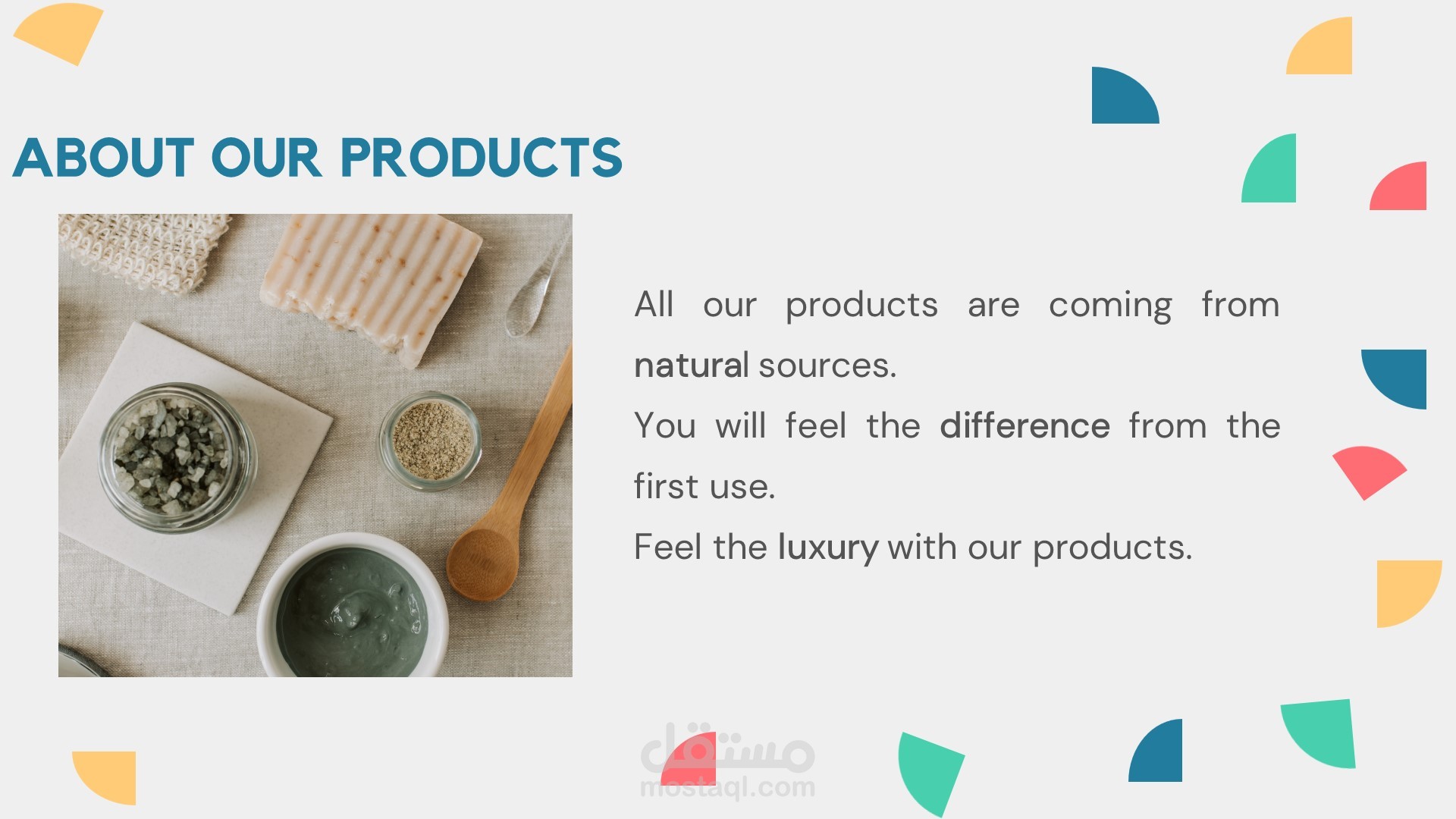 يبرز العرض التقديمي مميزات المنتجات عالية الجودة تحافظ على الجمال وتعزز صحة البشرة بشكل طبيعي.