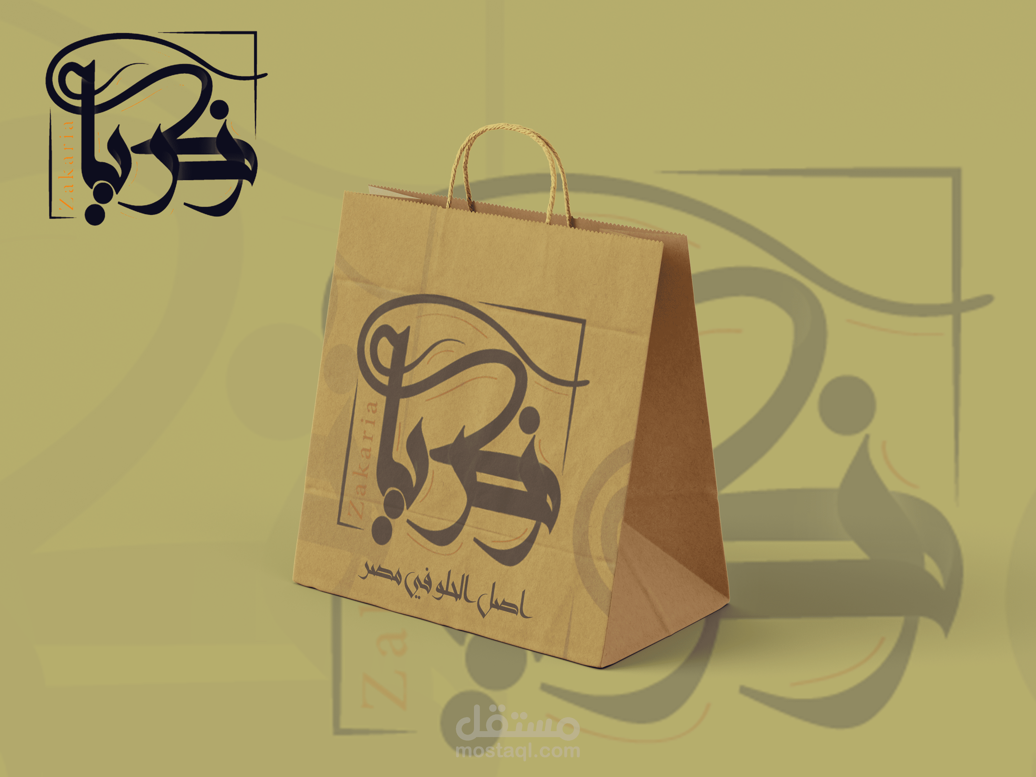لوجو تايبوجرافي لمحلات زكريا للحلويات الشرقية ، تصميم يعبر عن العراقة والاصالة بفكر شرقي وابداعي
