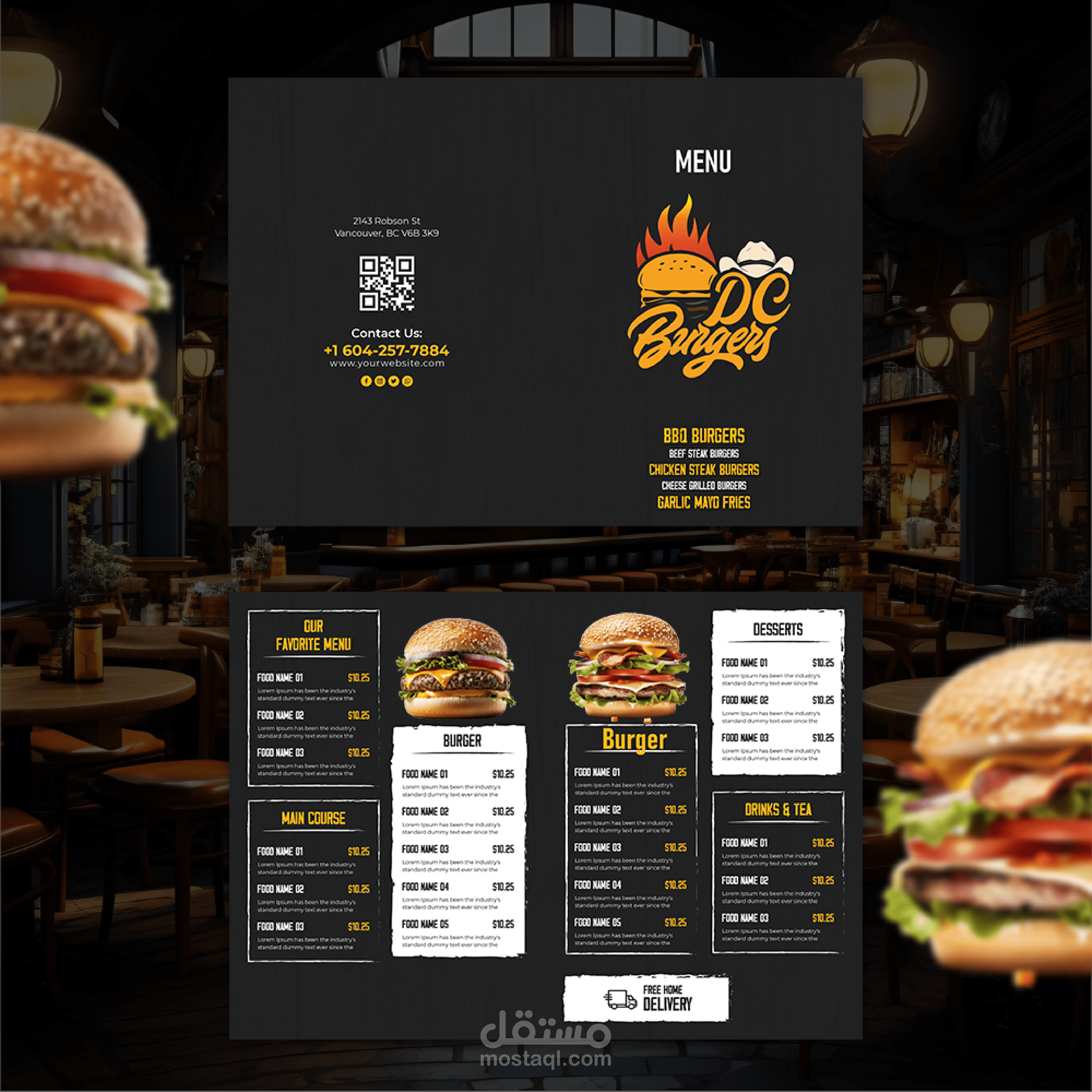 تصميم هوية بصرية لمطعم برجر اسمه " Dc Burgers "