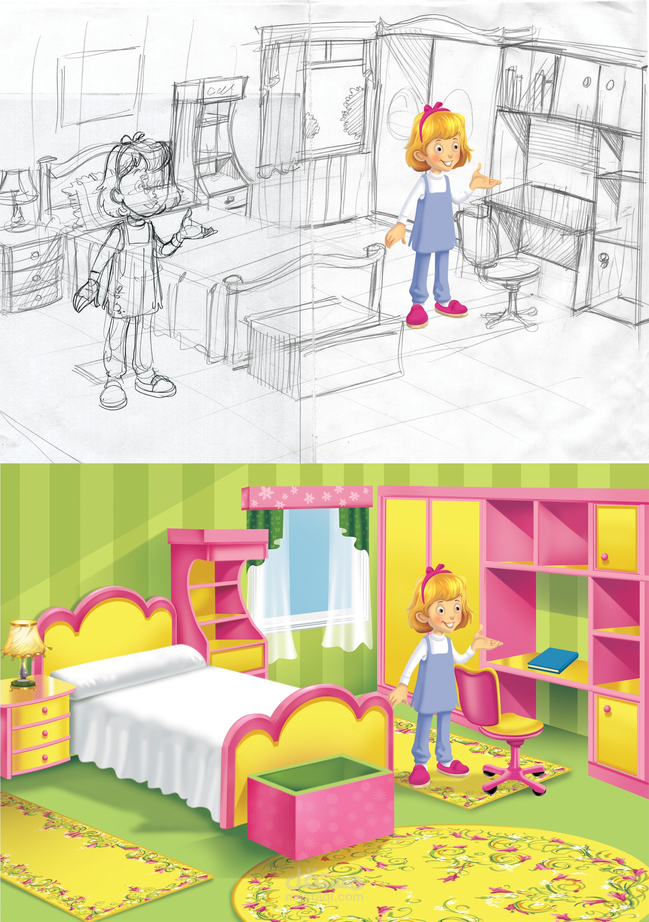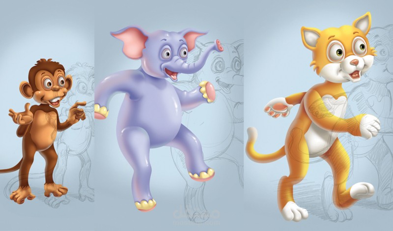 وبعد موافقة العميل على الاسكتشات تم البدأ فى التلوين