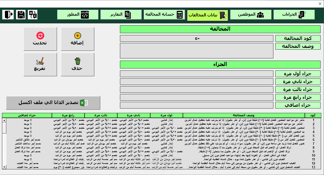 - من هذه النافذة يتم تسجيل وتعديل وحذف بيانات المخالفات