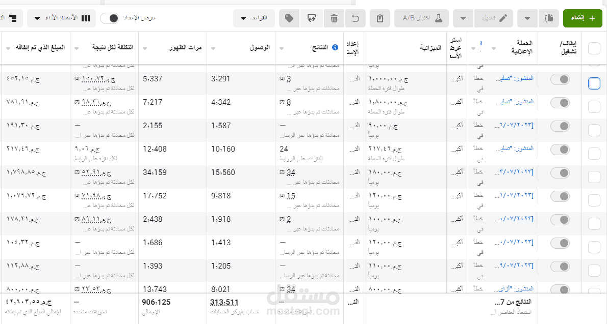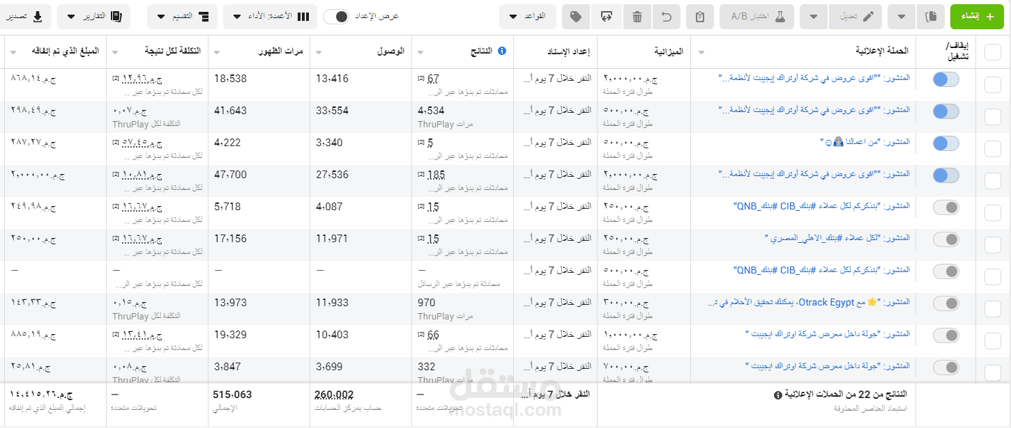 نتائج لحملات اعلانية على منصة فيسبوك وانستيجرام لمجموعة من الشركات