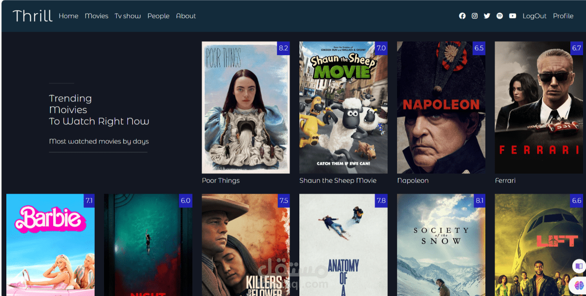 تصميم موقع باستخدام ريأكت يقوم بعرض الافلام والقنوات