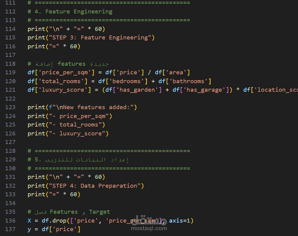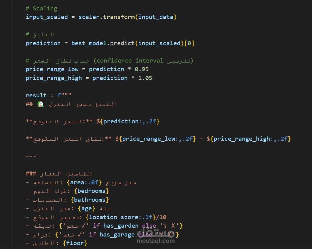 نظام متكامل يستخدم تقنيات التعلم الآلي (Machine Learning) للتنبؤ بأسعار العقارات بدقة عالية بناءً على خصائص ومواصفات العقار.