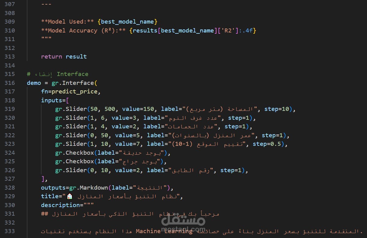 - تصميم واجهة سهلة الاستخدام بـ Gradio