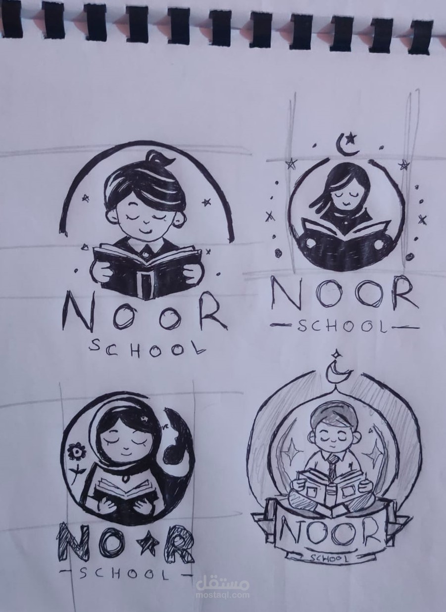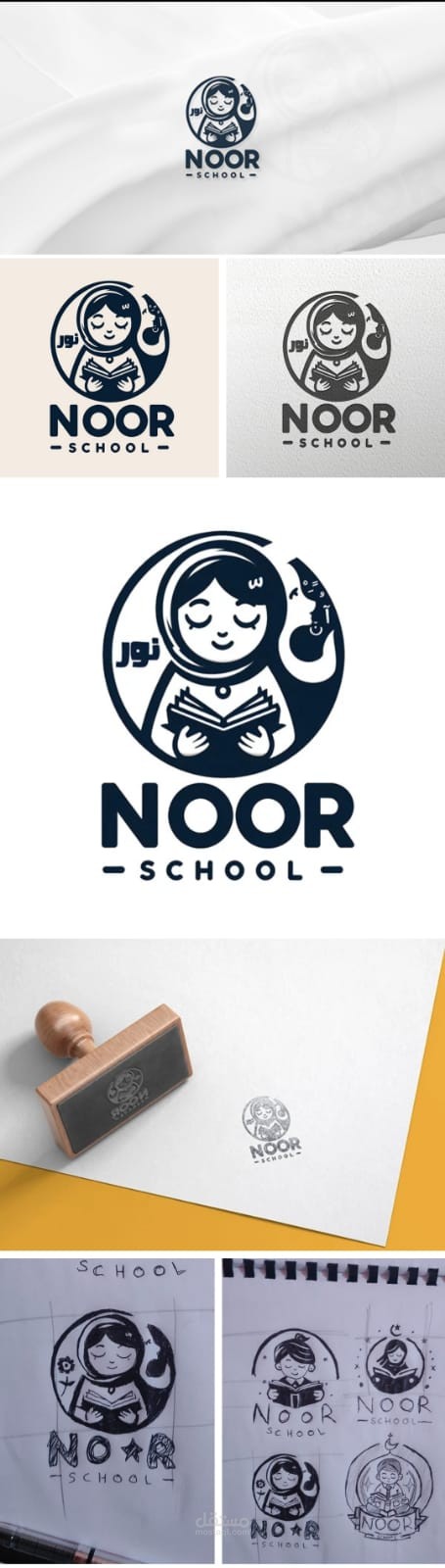 تصميم لوجو لمدرسة لتعليم الفتيات اللغة العربية والقران الكريم عن طريق الاونلاين وتم عمل اكتر من اسكتش للتصميم والتصميم عبارة عن فتاة صغيرة تقرأ من الكتاب وبجوارها حروف اللغة العربية ويوجد اسم المدرسة اسفل التصميم . رسمت على الاليسترتور وتم استخدام الفوتوشوب وتنسيق الالوان واخذ التعديلات للخروج باحسن صورة لللوجو.