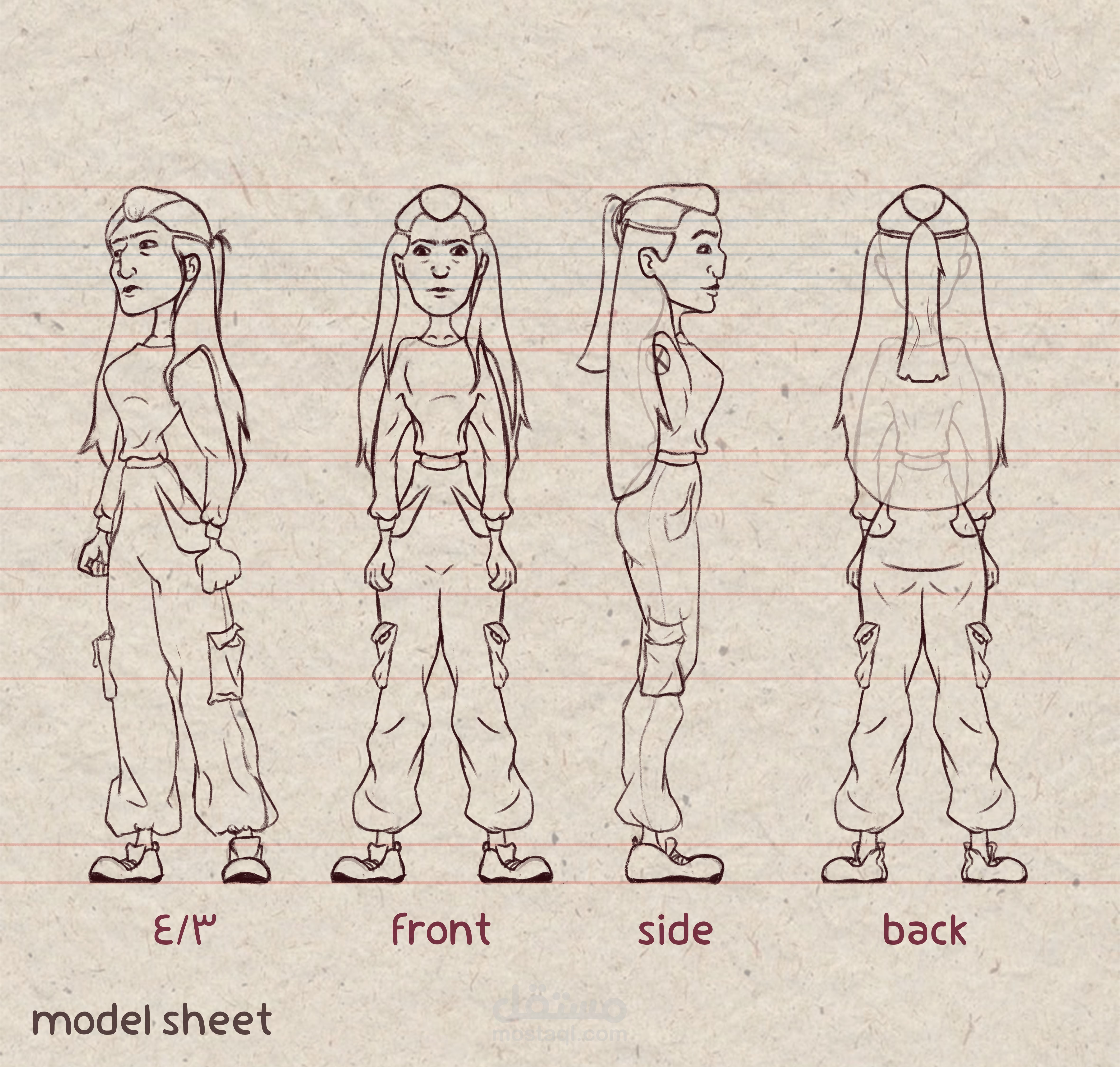 - الانتهاء من التعبيرات والوضعيات الملائمة للشخصية.