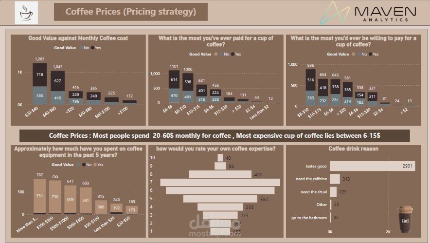 Conclusion: The Maven Coffee Challenge presents a unique opportunity to leverage data insights for a successful coffee shop venture in the competitive US market. By harnessing the power of analytics to understand consumer preferences, optimize product offerings, align pricing strategies, and enhance operational efficiency, we can empower investors to establish a thriving coffee business that resonates with target audiences and delivers exceptional value to customers.