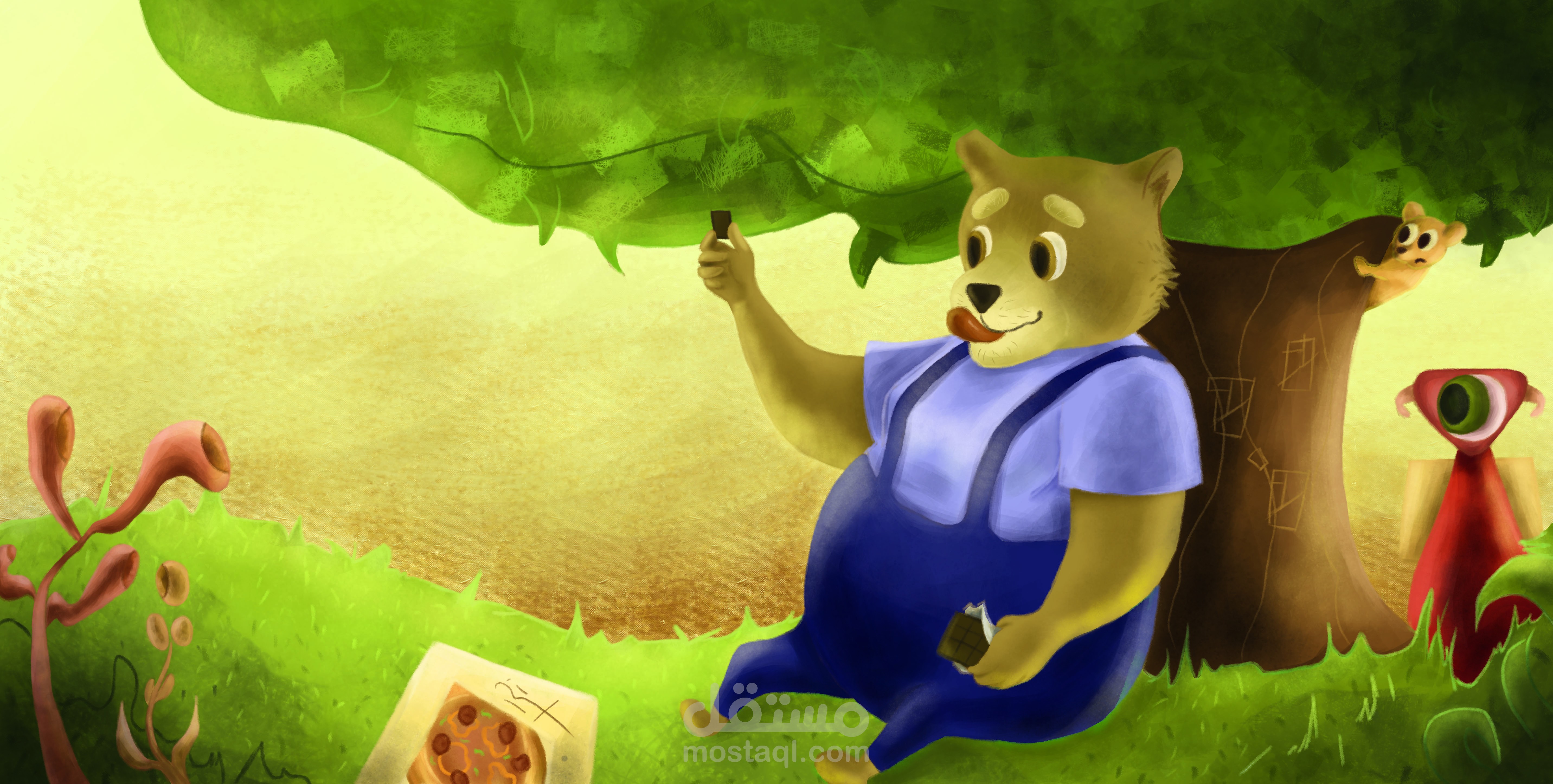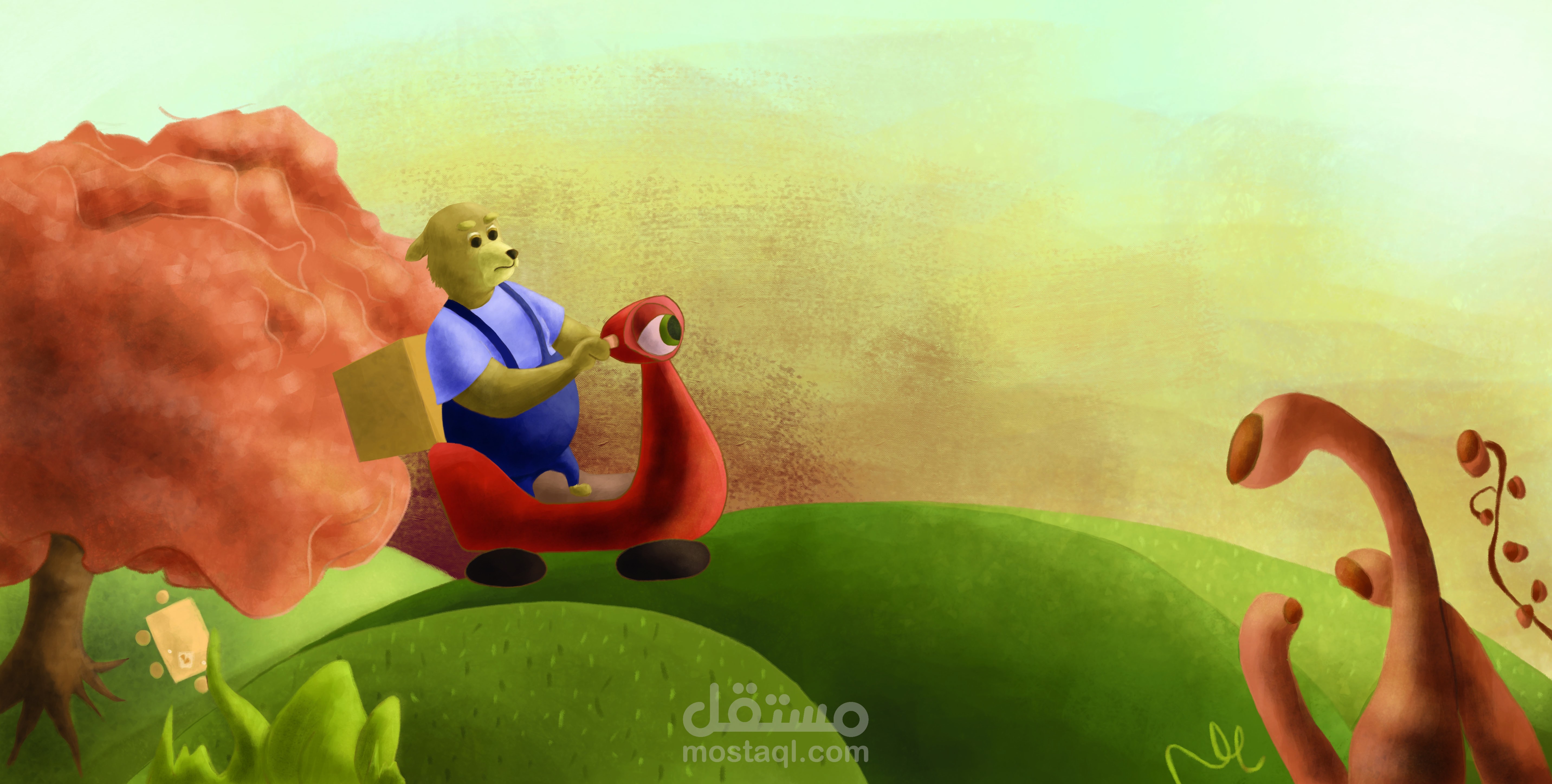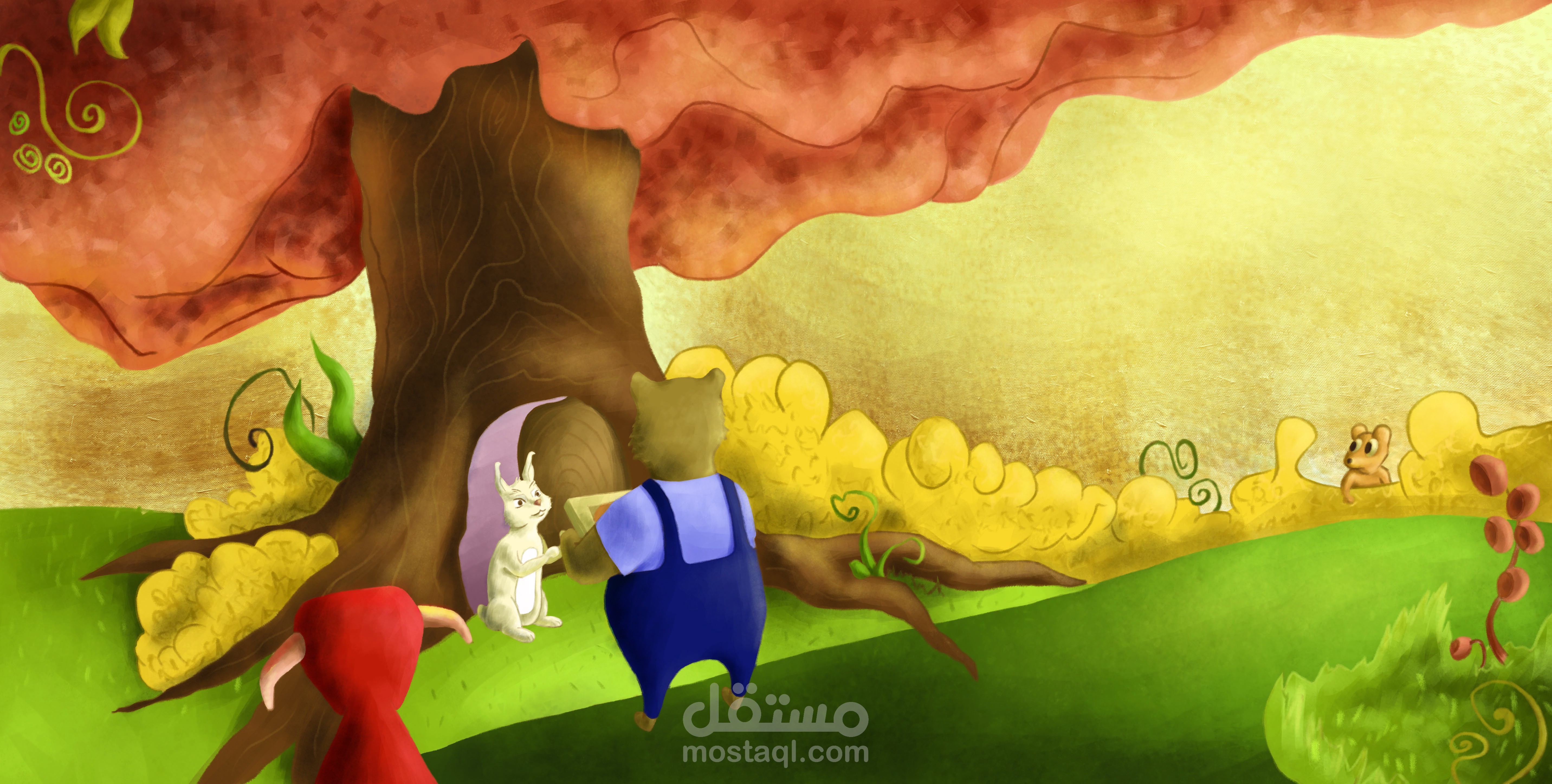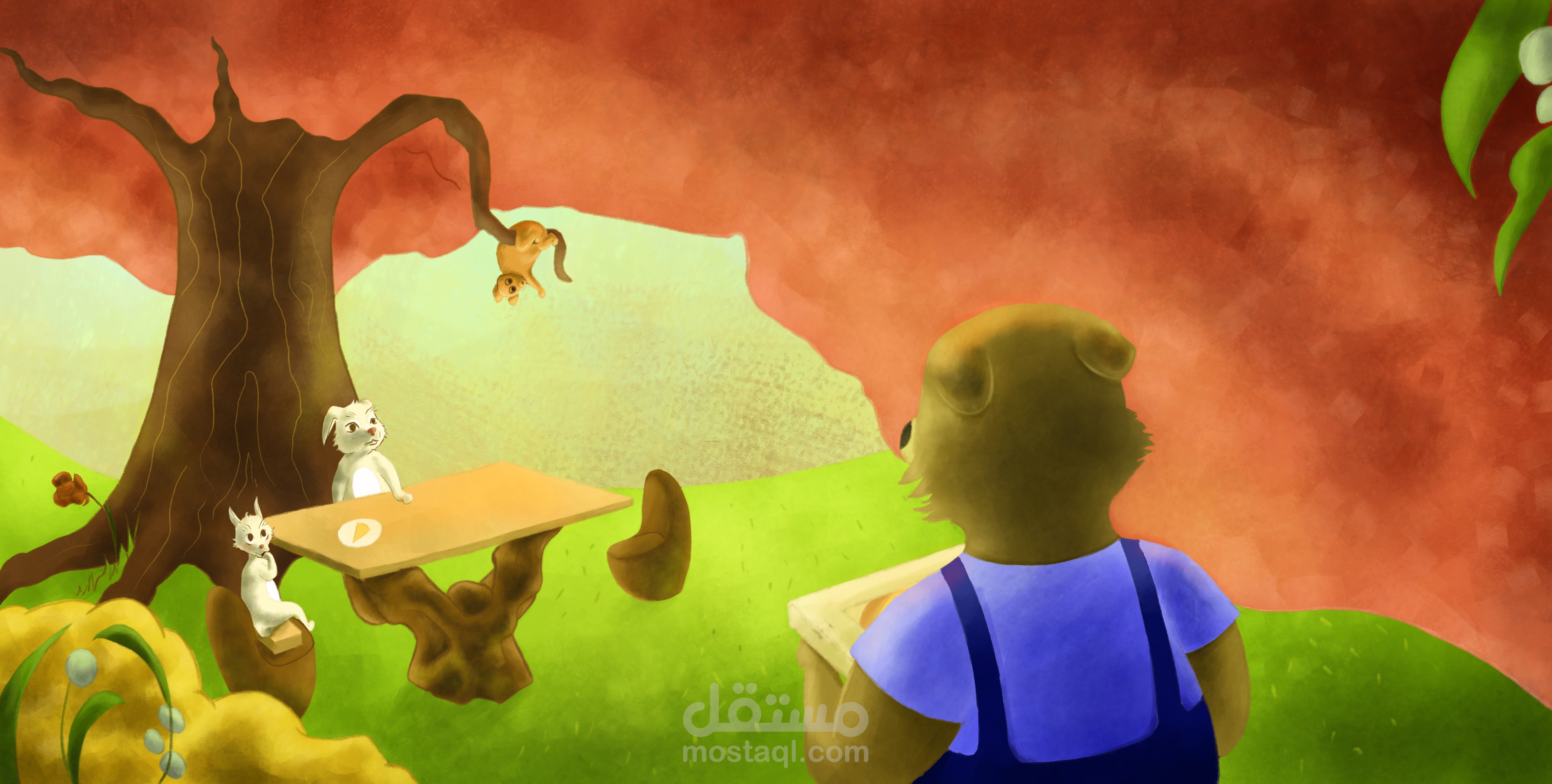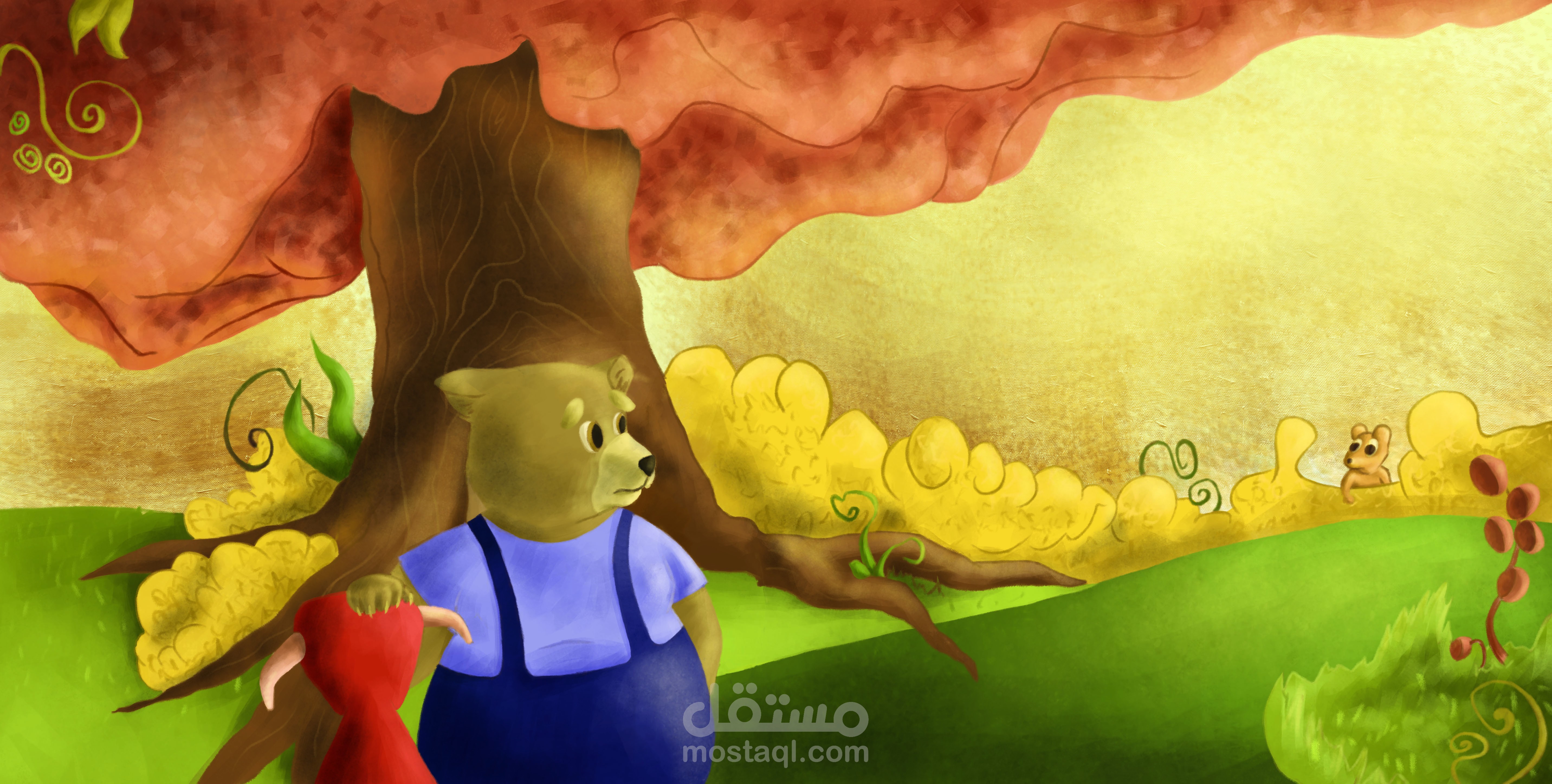- تصميم شخصيات القصة (الدب - الأرنب - الطفل) ومراجعة تعديلات العميل عليها.