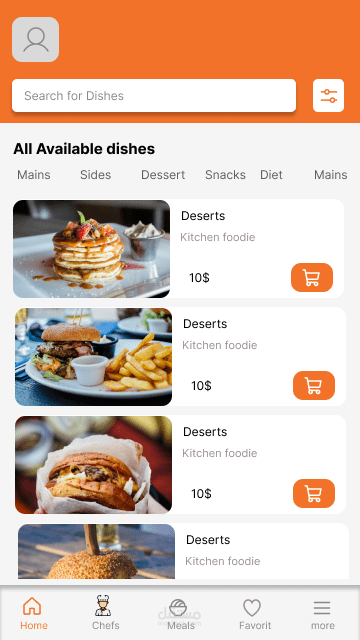 تطبيق Food App هو حلاً مبتكرًا لأولئك الذين يبحثون عن وجبات صحية ولذيذة مصنوعة في المنزل ويفتقرون إلى الوقت لإعدادها بأنفسهم. يُقدم التطبيق خدمة توصيل وجبات منزلية للأشخاص الذين يرغبون في الاستمتاع بطعام لذيذ ومغذي دون الحاجة إلى طهيه. بالإضافة إلى ذلك، يوفر Food App خيارات صحية متنوعة تناسب احتياجات الأشخاص الذين يتبعون نظامًا غذائيًا خاصًا أو يرغبون في خسارة الوزن. باستخدام تقنيات متقدمة وفريق موهوب من الطهاة، يضمن التطبيق تقديم وجبات عالية الجودة وصحية للمستخدمين بكل راحة وسهولة وايضا باستخدام تطبيق Food App، يتاح للمستخدمين القدرة على اختيار الشيف الذي يرغبون في تحضير الطعام لهم. يوفر التطبيق قائمة بالشيفات المتاحين والمؤهلين لإعداد الوجبات المختلفة، مع إمكانية الاطلاع على ملفاتهم الشخصية وتقييمات المستخدمين السابقين. يمكن للمستخدمين اختيار الشيف الذي يتناسب مع تفضيلاتهم الشخصية ومتطلباتهم الغذائية، مما يضمن تجربة تناول طعام مميزة ومرضية.
