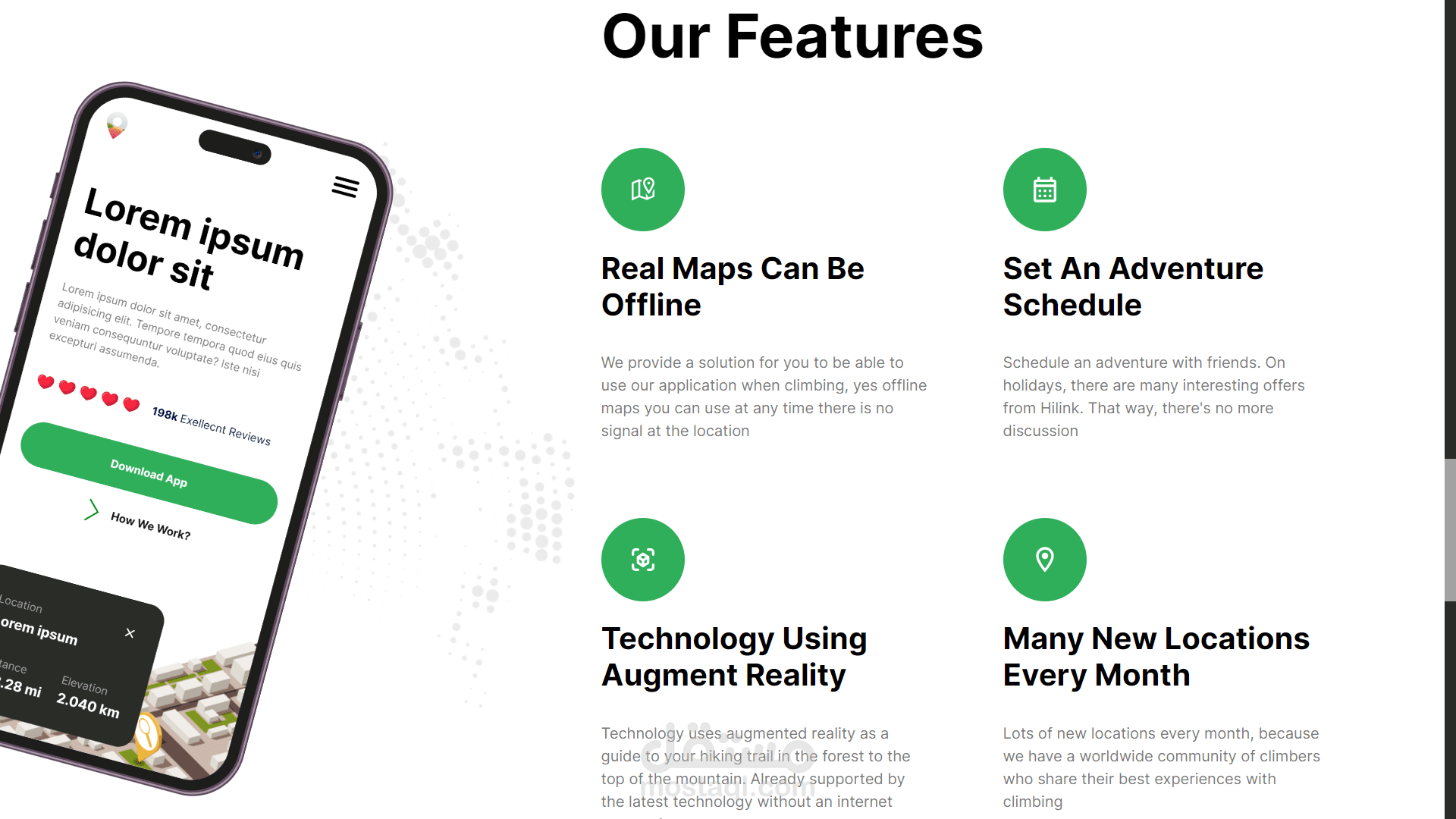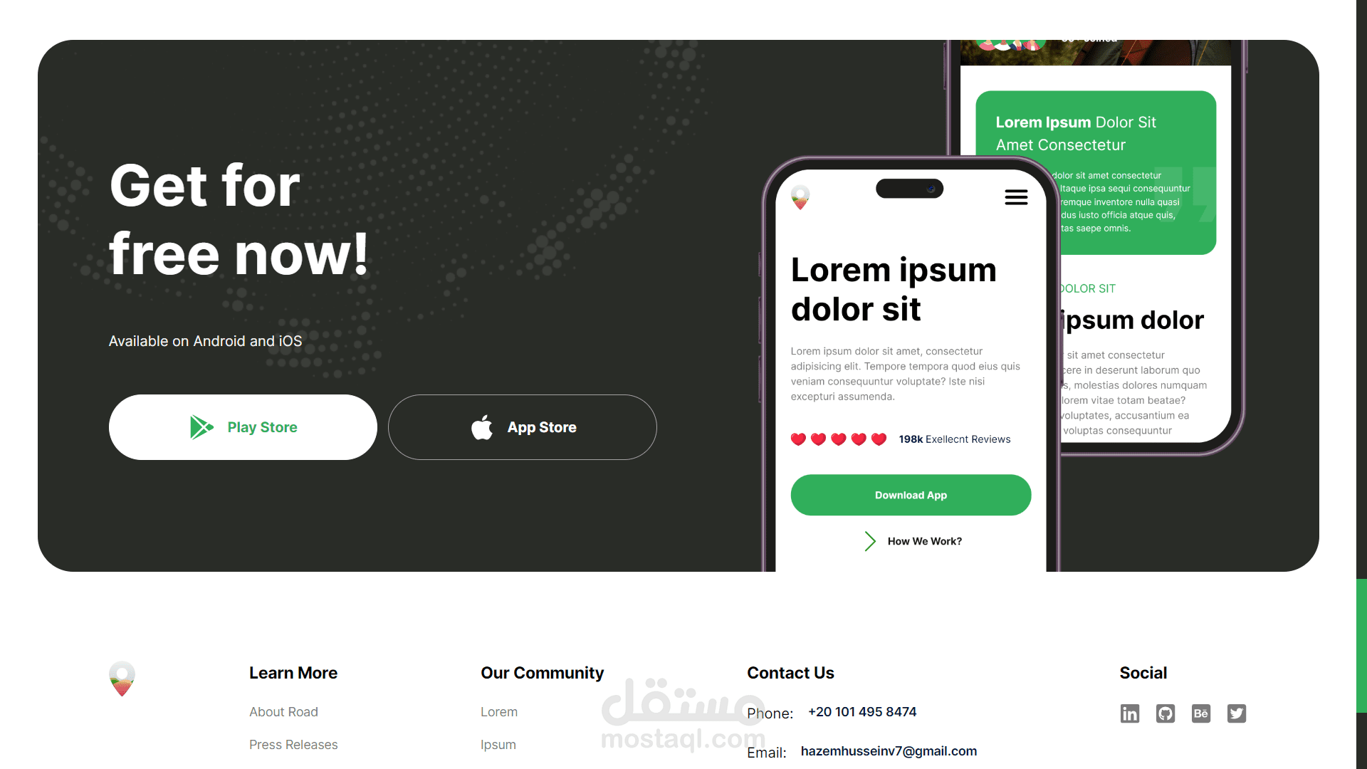 موقع يحاكى موقع رسمى لتطبيق للسفر يحتوى على بعض القوائم التى توضح مميزات التطبيق وكيفية عمله بالاضافة ايضاً الى قائمة "Call to action" لتنزيل التطبيق من متجرى play store و app store