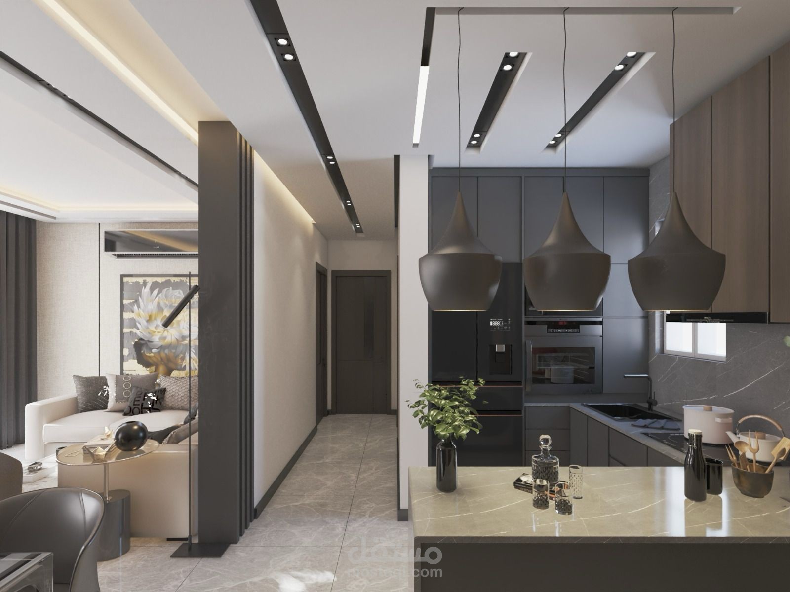 living room & kitchen