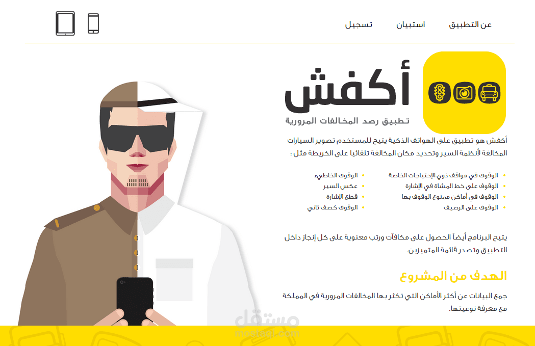 موقع تطبيق اكفش، استلمته تصميم PSD وقمت بتكويده الى موقع كامل HTML/CSS متوافق مع جميع الاجهزة باستخدام فريم وورك Foundation.