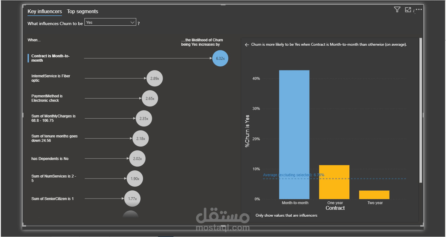 - Avg Tenure Churned = AVERAGEX(FILTER(CustomerTable, CustomerTable[Churn]="Yes"), CustomerTable[tenure])