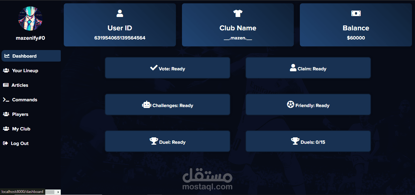 موقع كامل (فرونت إند و باك إند) قمت بعمله لعميل, الموقع خاص ببوت ديسكورد و به نظام ربط بين الديسكورد و الموقع.