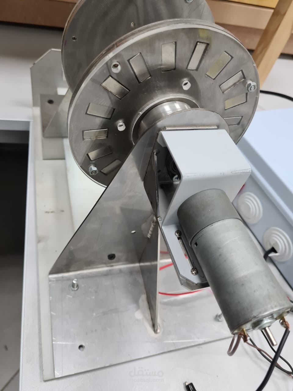 First the system is designed and modeled on Solidworks and then the designed parts is manufactured using Laser cutting machine , conventional Lathe , conventional milling machine ,and CNC bending machine. It was desired to measure the torque of a motor that wanted to be tested however applying so much force on the motor shaft may hurt the motor ,so I choosed the magnetic coupler to be added to the system to add the following : - Mechanical fusing. - No load starting. At the end the system succeded to acheive the desired objective to measure the motor torque , no load speed electrical power ,and efficiency.
