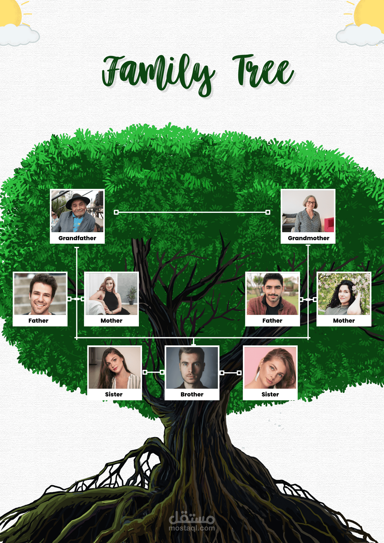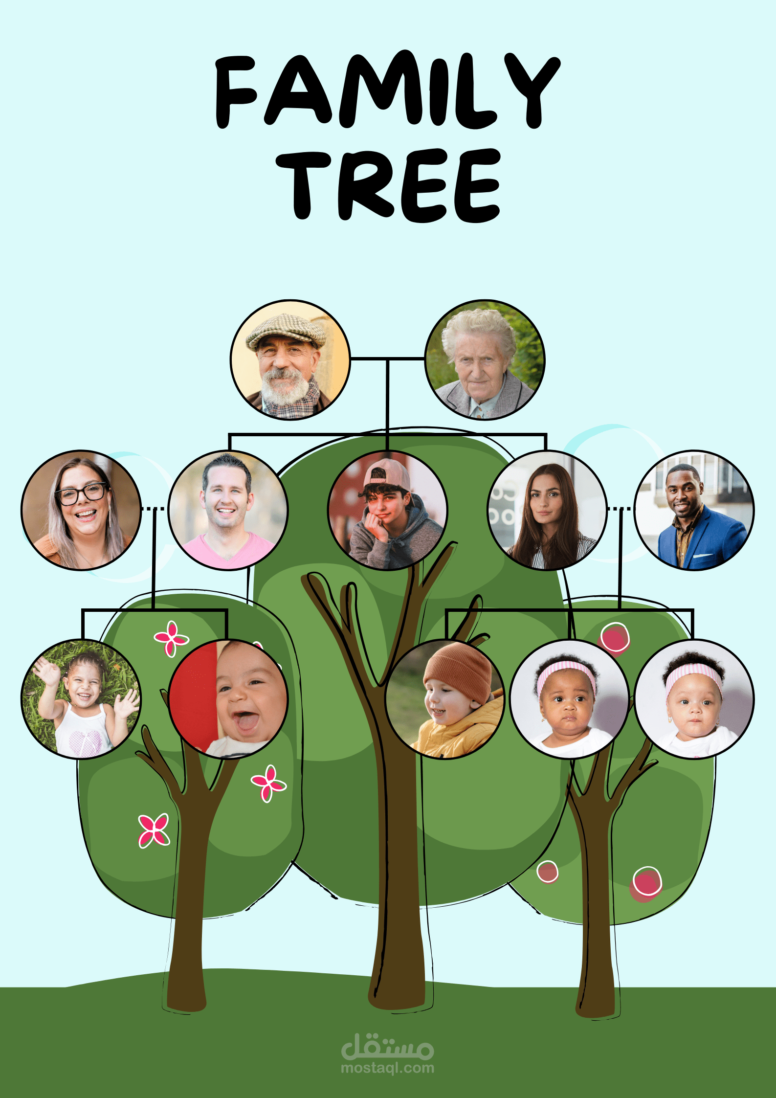 تصميم شجرة العائلة قابلة للطباعة حسب أسماء العائلة