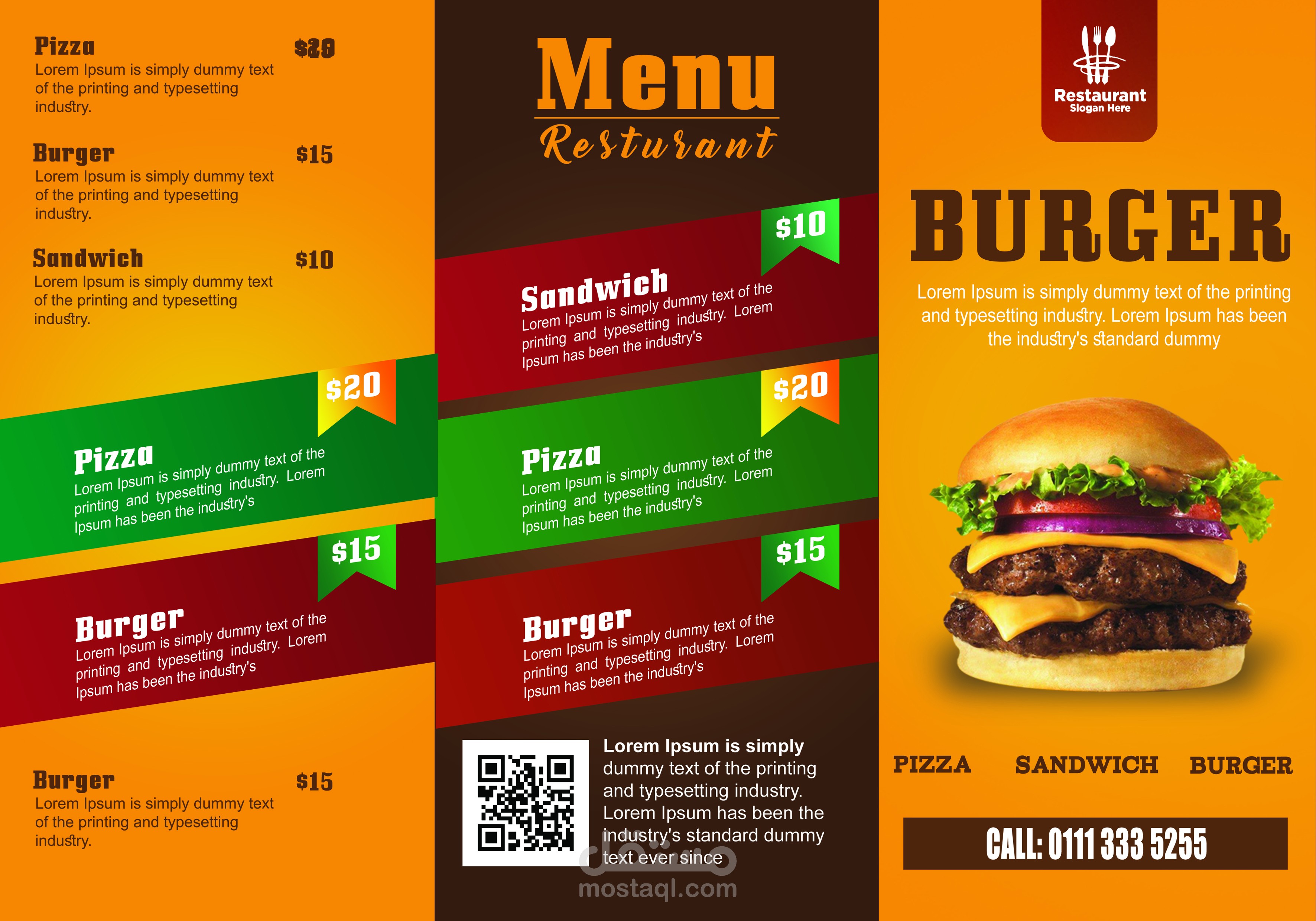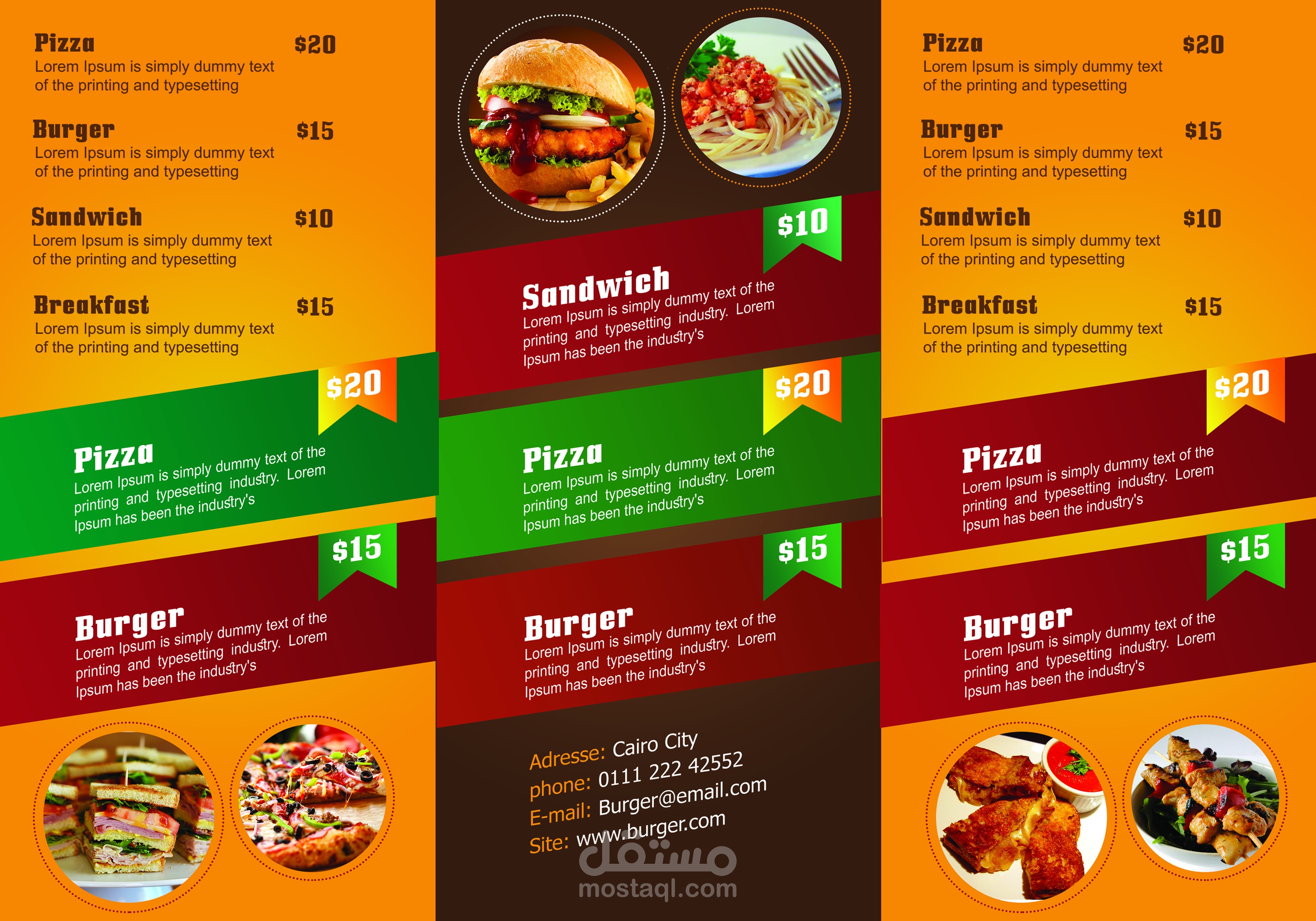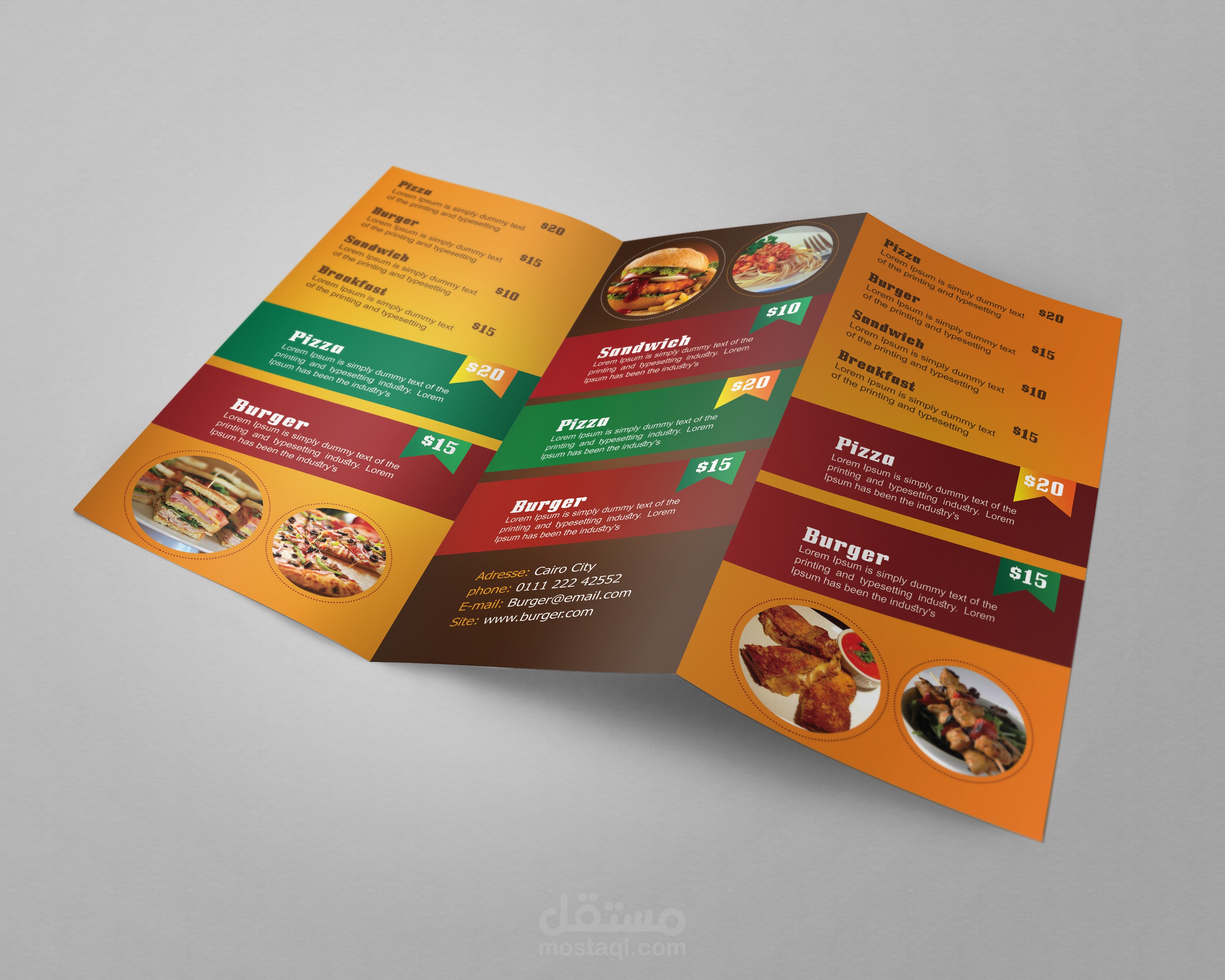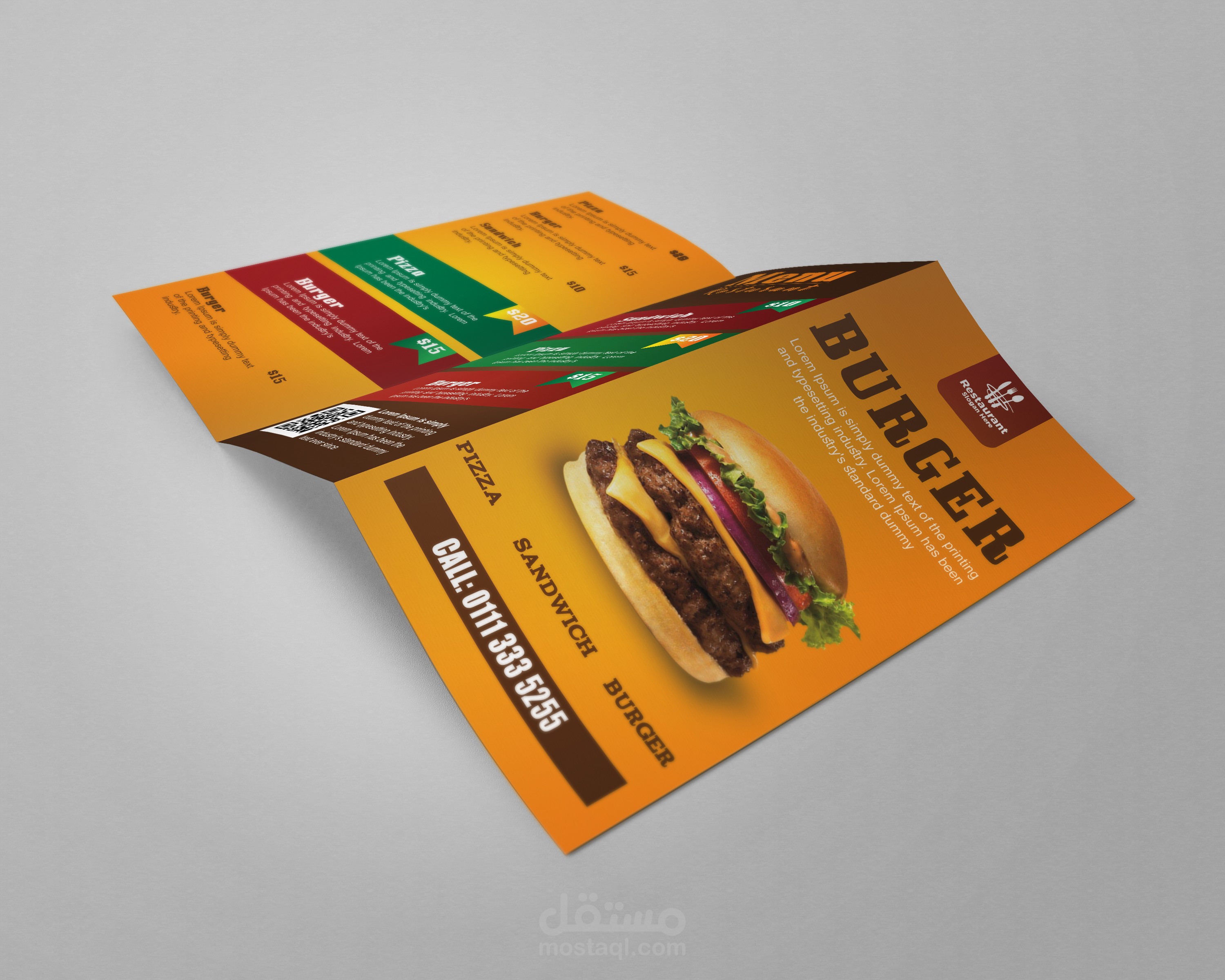 منيو وهمي لمطعم برجر