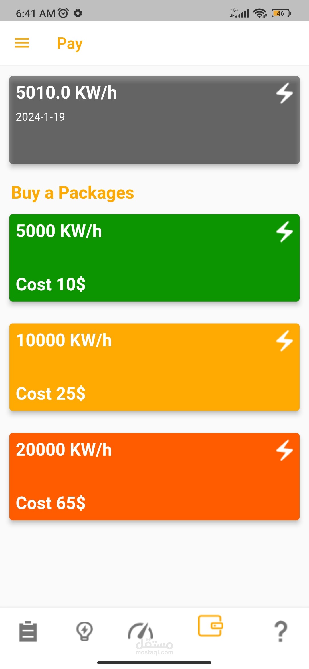 جهاز و أيضا تطبيق يقوم بعرض مقدار استهلاكك القدرة الكهربائية و أيضا عرض الفولطية و التيار الذي يمر ، من خواص هذا الجهاز يعيطيك تنبيهات أي الشعارات اذا قمت باستهلاك اكثر للقدرة ، و هذا العمل يحاكي الوضع الكهرباء في العراق .حيث يمكنك شراء حزم من كهرباء.