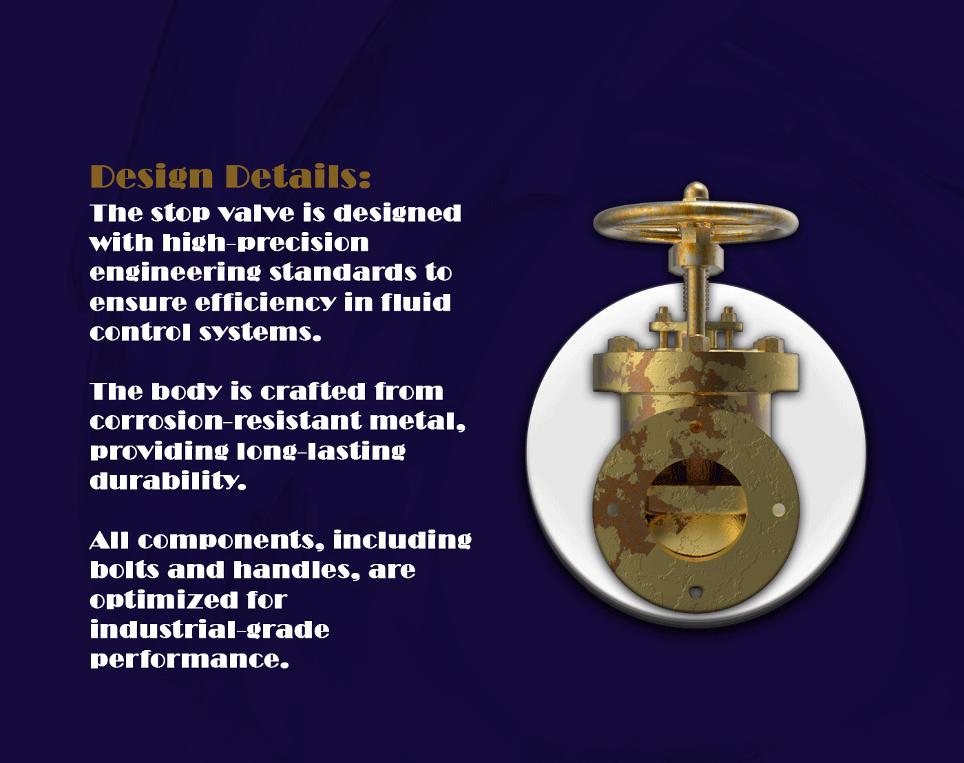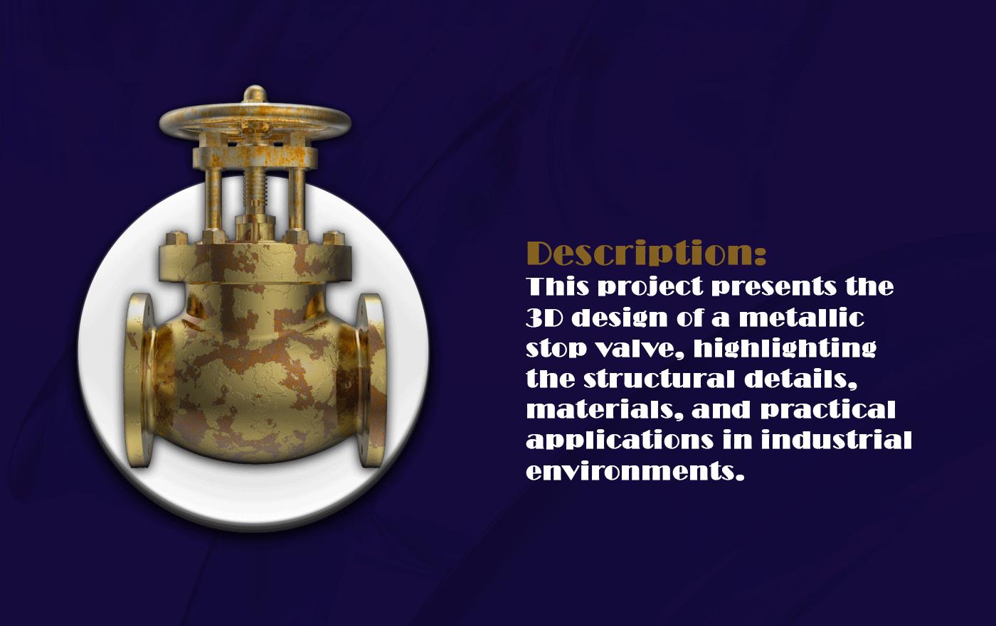 يقدم هذا المشروع التصميم ثلاثي الأبعاد للصمام التوقف المعدني، مع تسليط الضوء على التفاصيل الهيكلية والمواد والتطبيقات العملية في البيئات الصناعية