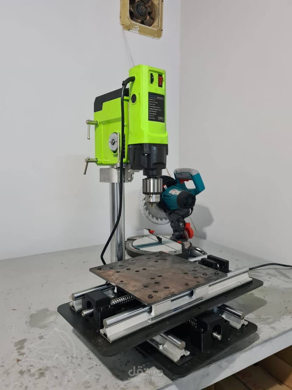 This 2-axis CNC semi-automatic CNC table is designed to be mounted on a press drill to give the user the ability to make slotes and to make holes with accurate positioning which can not be acheived with only the press drill. This system is implemented on my press drill at my LAB.