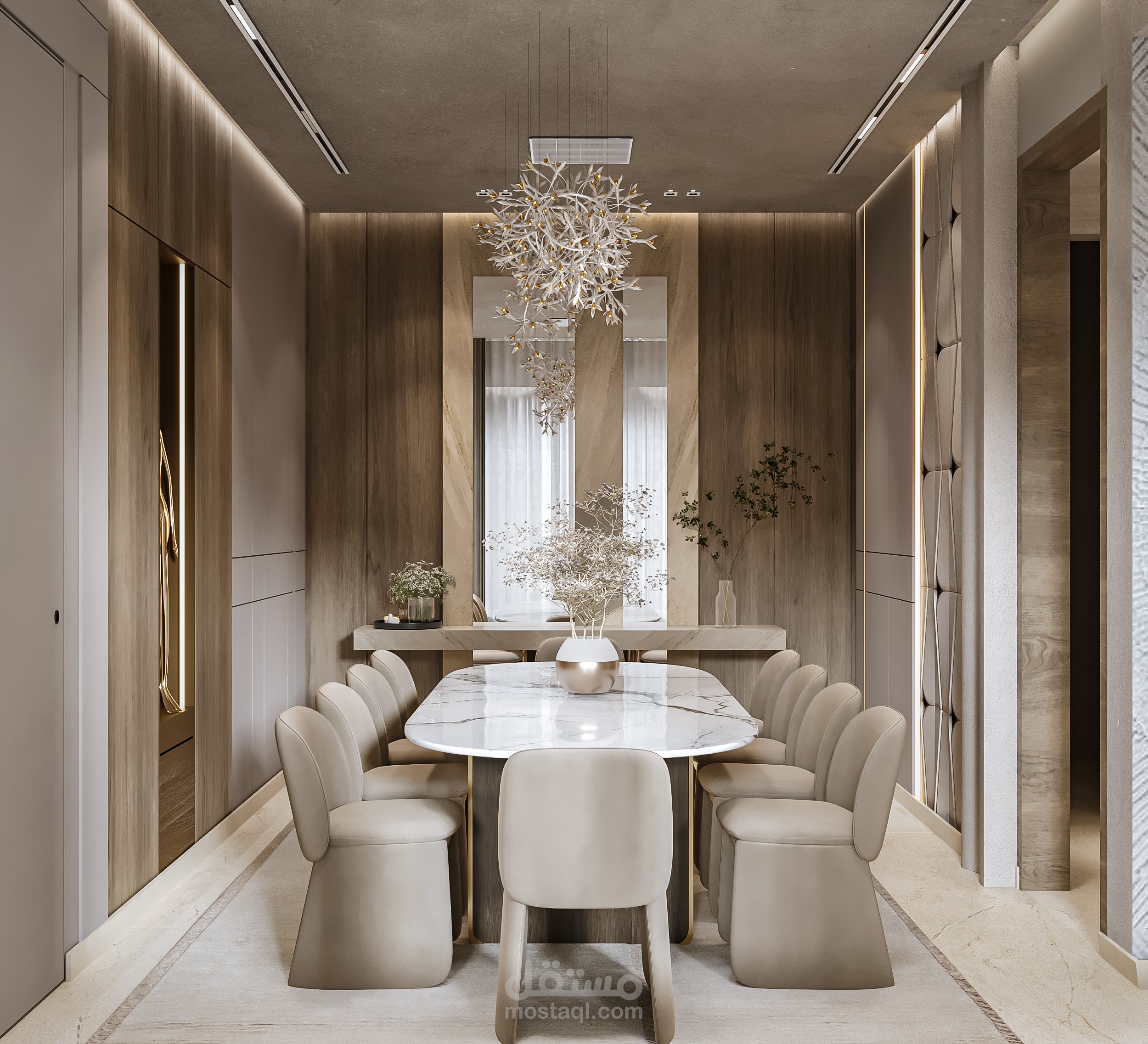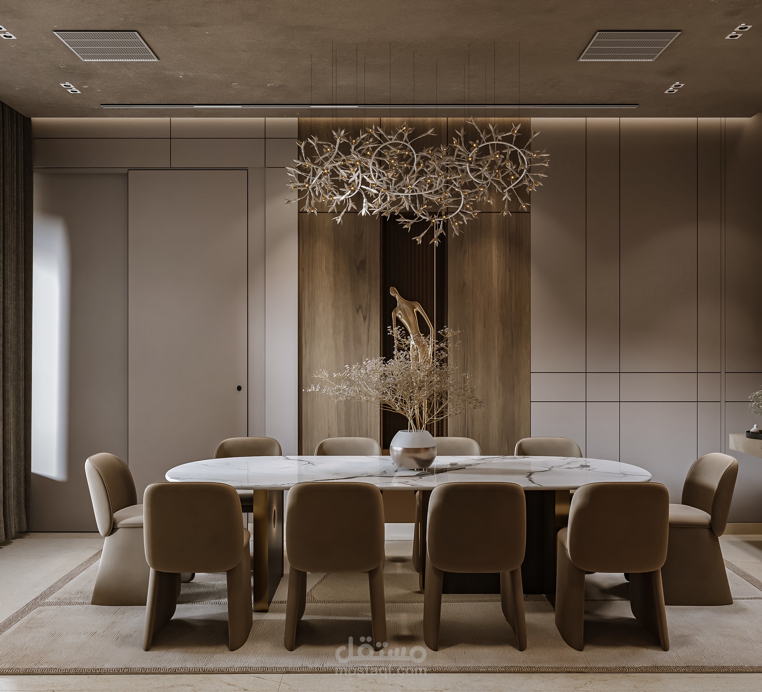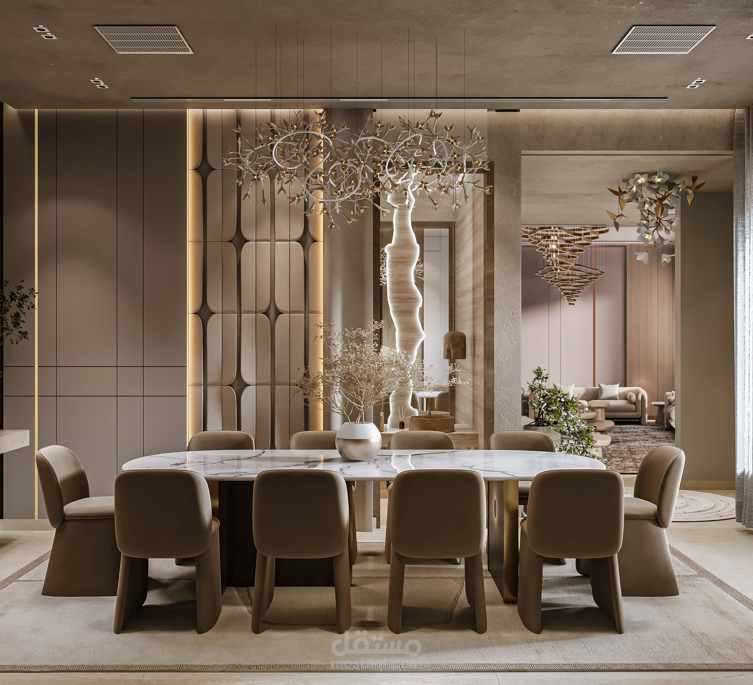 تصميم داخلي فخم لغرفة طعام في المملكة العربية السعودية