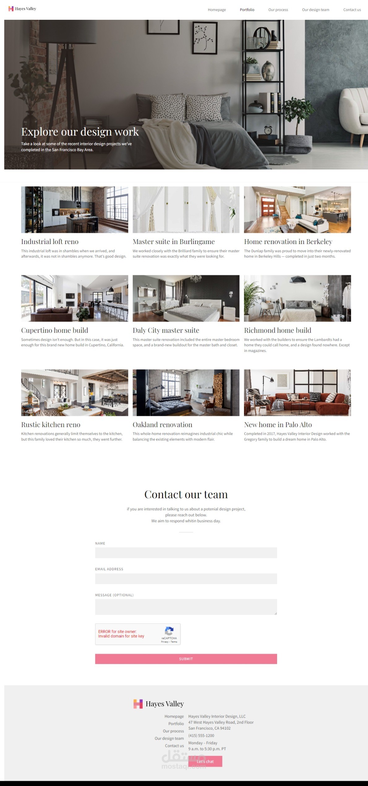 عملت مع فريق هايز فالي لتصميم وبناء وإطلاق موقع إلكتروني يُبرز أعمالهم الرائعة في تصميم الديكور الداخلي.