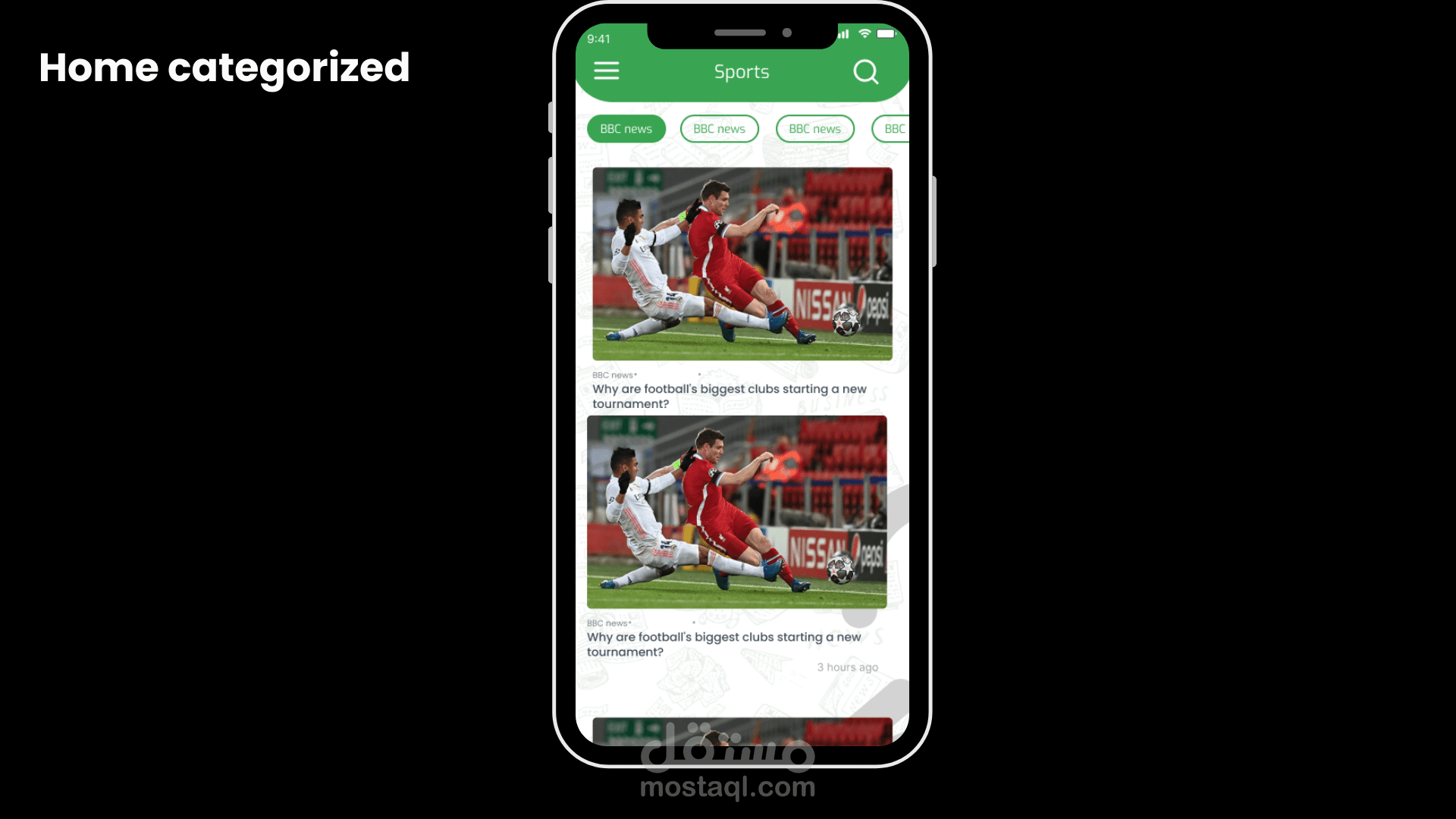 - يوجد ف واجهه التطبيق العديد من فئات الاخبار المختلفة كما ذكرت فوق مثل لسياسة والرياضة والتكنولوجيا والأعمال والصحة ...