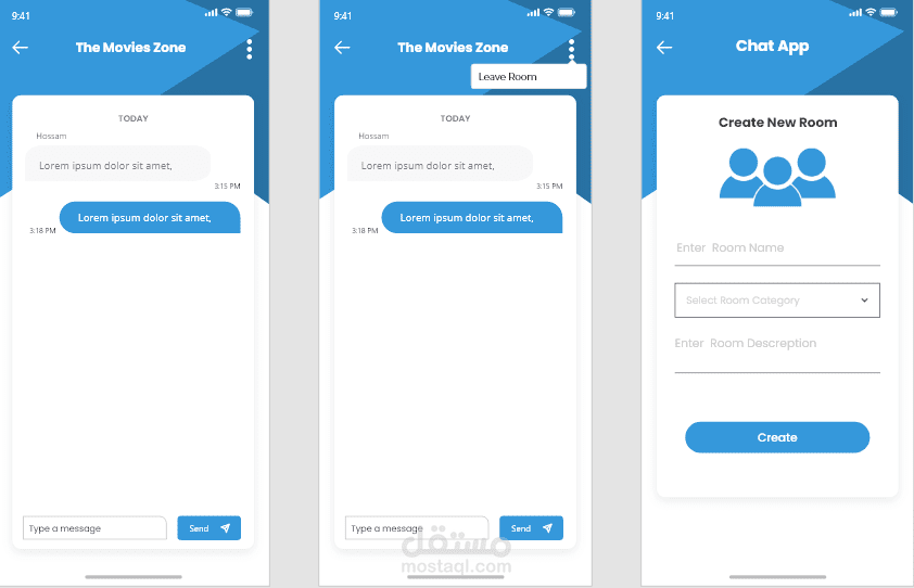 إنشاء الغرف: يتيح التطبيق للمستخدمين إنشاء غرف دردشة جديدة عن طريق تحديد اسم الغرفة ووضع موضوع للمحادثة.