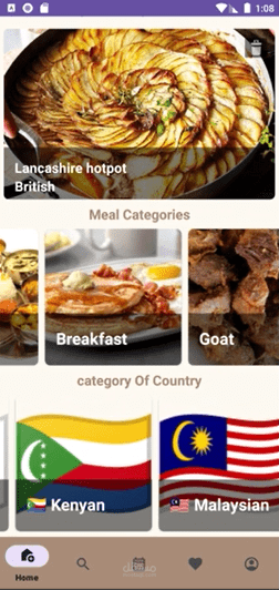 عرض قائمة البلدان: ليتمكن المستخدم من مشاهدة الوجبات الشهيرة في كل بلد.
