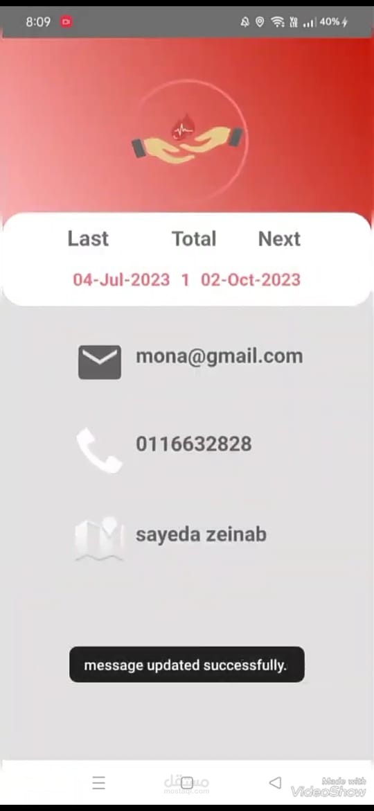 إعلامات التبرع: يمكن للمستخدمين تلقي إشعارات من التطبيق لتذكيرهم بمواعيد التبرع المقبلة بناءً على فترة الزمن التي حددوها.