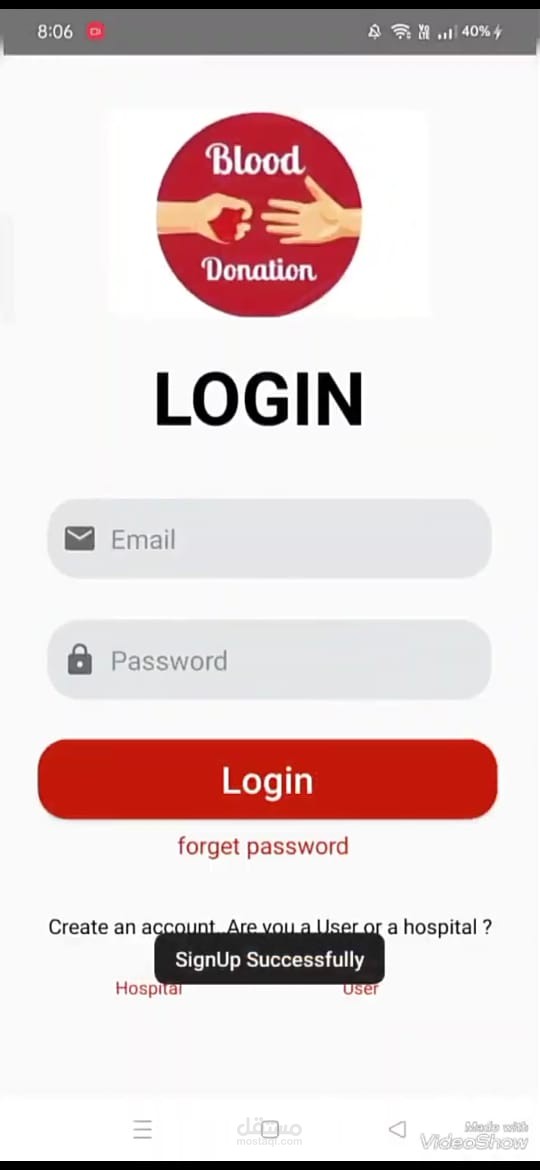 التسجيل وتسجيل الدخول: يتيح التطبيق للمستخدمين التسجيل كمتبرع بالدم باستخدام البريد الإلكتروني وكلمة المرور، مع إمكانية تسجيل الدخول للوصول إلى ميزات إضافية.
