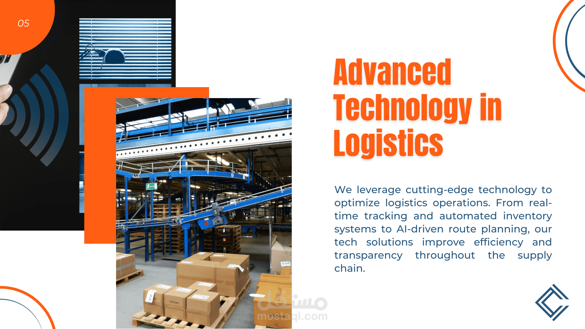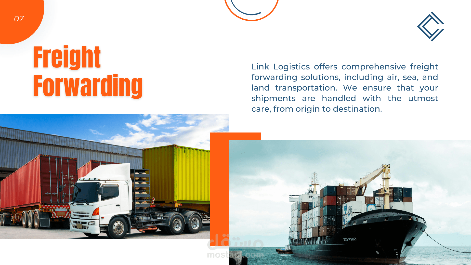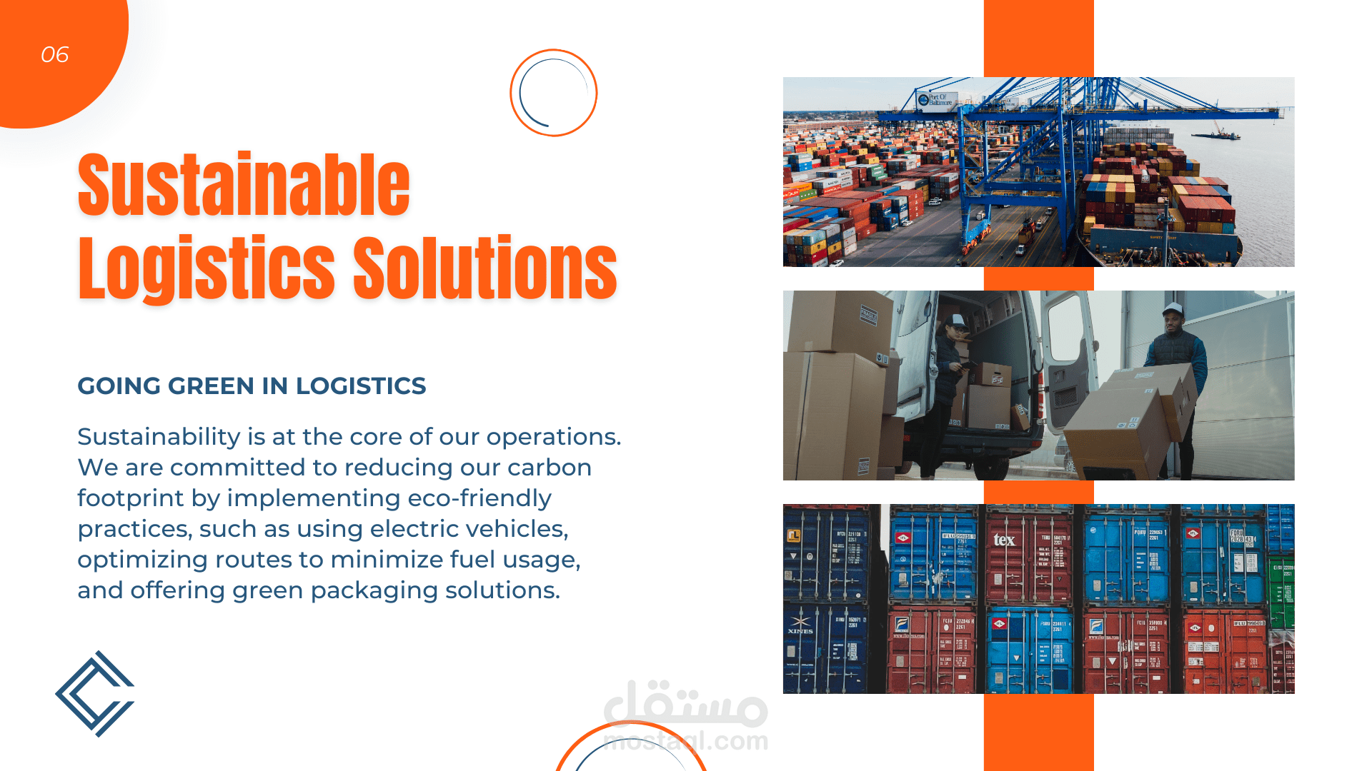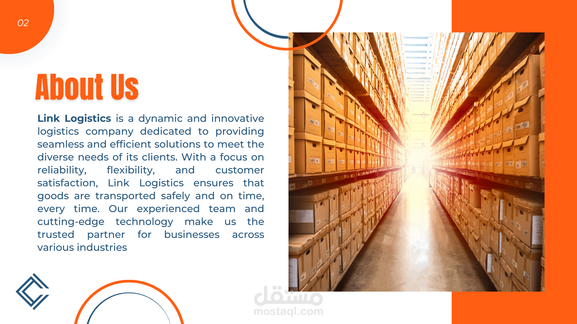 ملف تعريفي لشركة أعمال لوجستية يعكس تفاصيل الشركة بوضوح وترتيب، مع تصميم عصري وجذاب.
