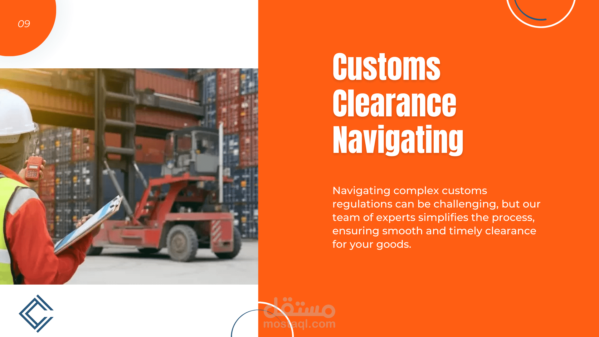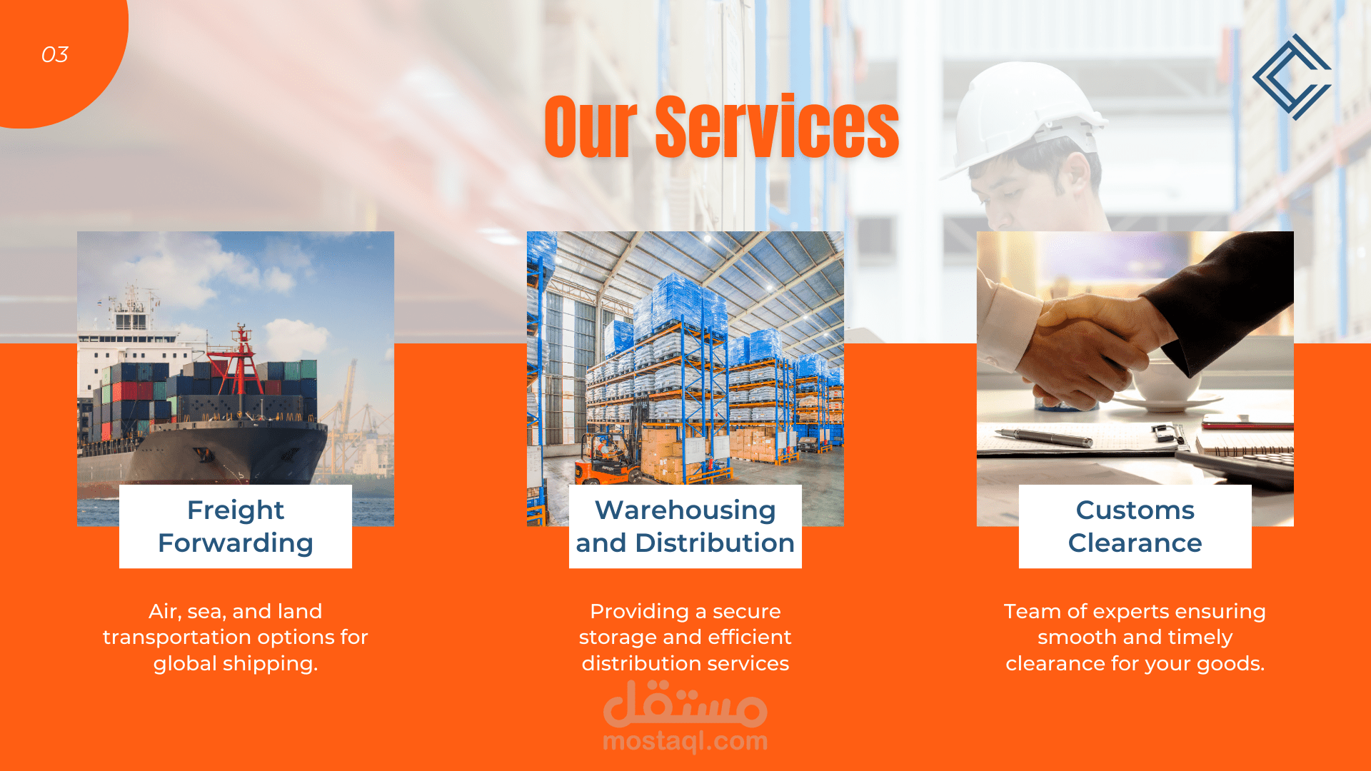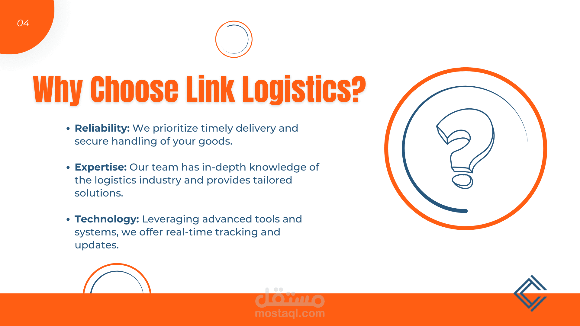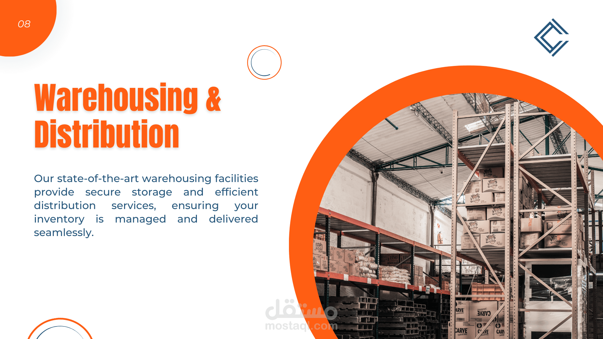 ملف تعريفي لشركة أعمال لوجستية يعكس تفاصيل الشركة بوضوح وترتيب، مع تصميم عصري وجذاب.