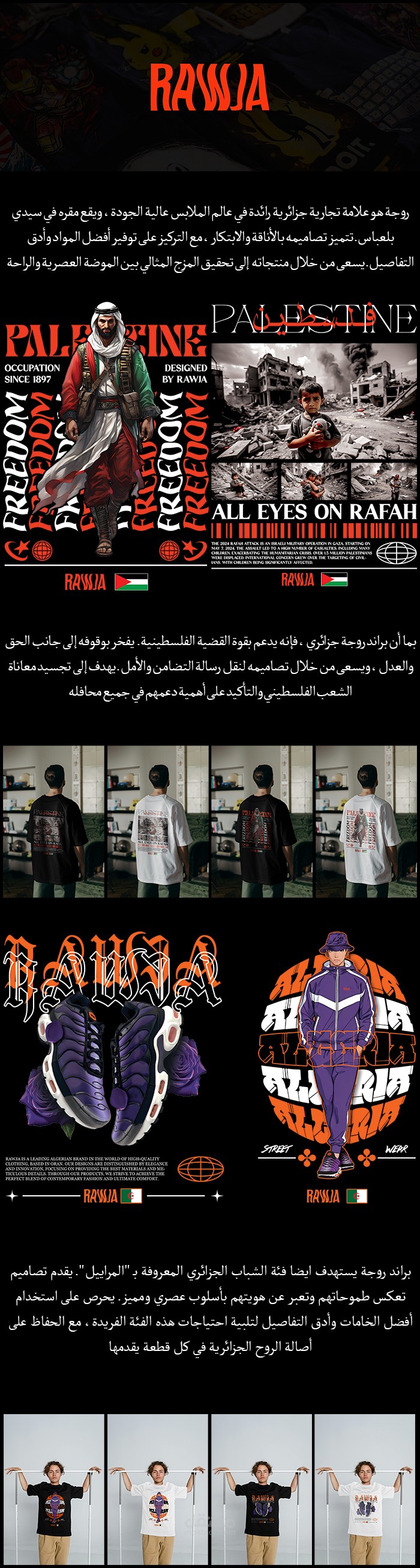 براند روجة هو علامة تجارية جزائرية رائدة في عالم الملابس عالية الجودة، ويقع مقره في سيدي بلعباس. تتميز تصاميمه بالأناقة والابتكار، مع التركيز على توفير أفضل المواد وأدق التفاصيل. يسعى من خلال منتجاته إلى تحقيق المزج المثالي بين الموضة العصرية والراحة المطلقة.