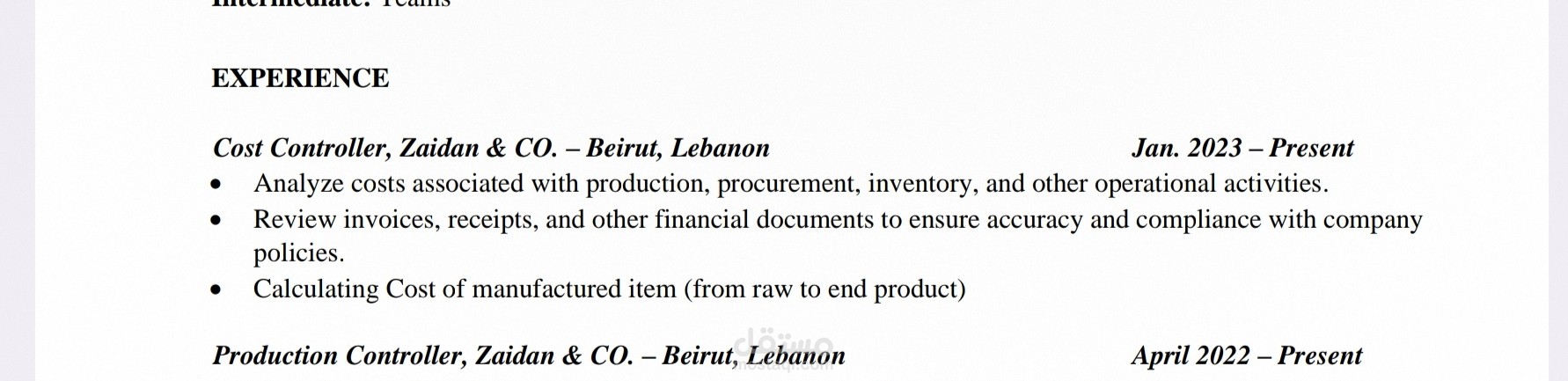 Analyze costs associated with production, procurement, inventory, and other operational activities. • Review invoices, receipts, and other financial documents to ensure accuracy and compliance with company policies. • Calculating Cost of manufactured item (from raw to end product)