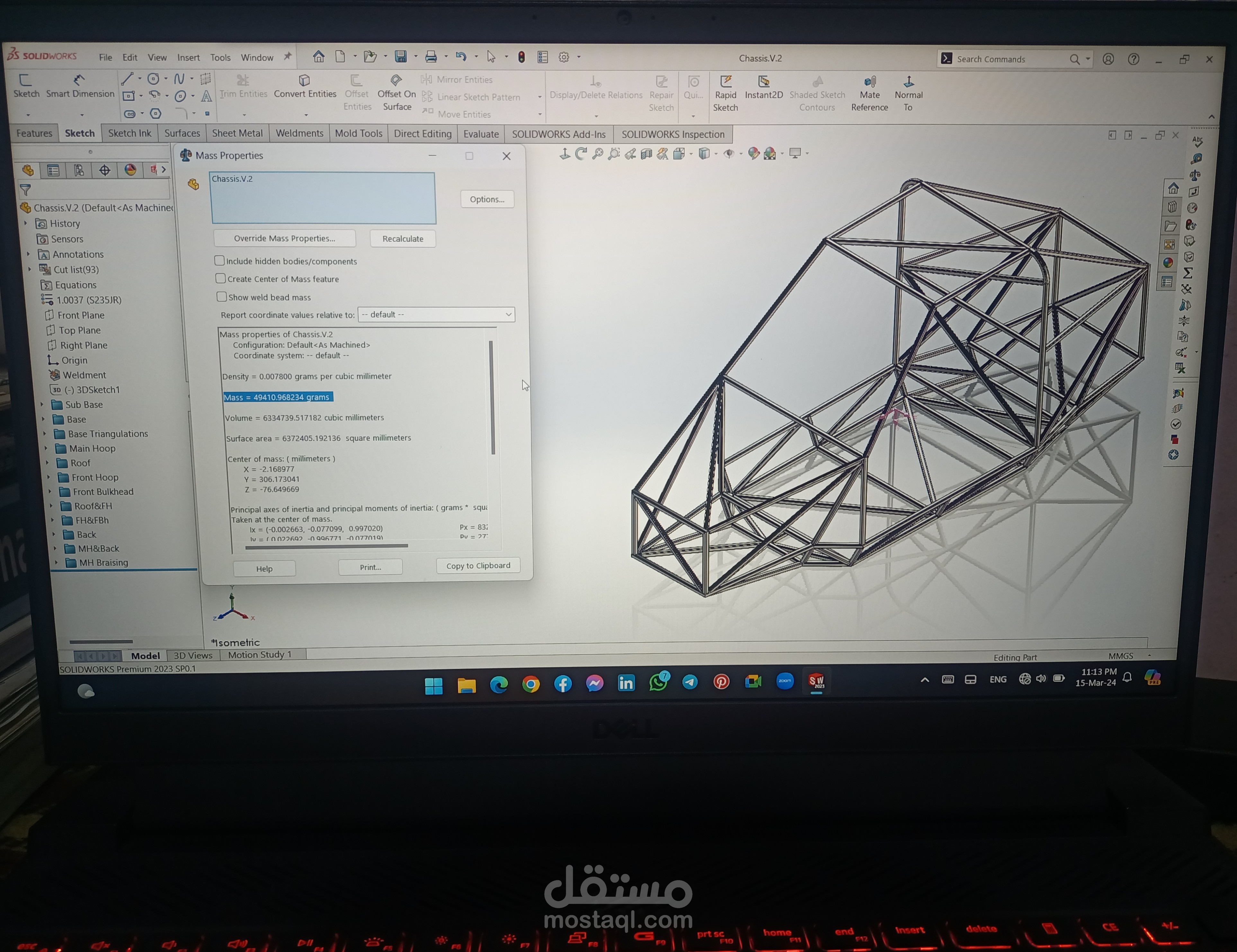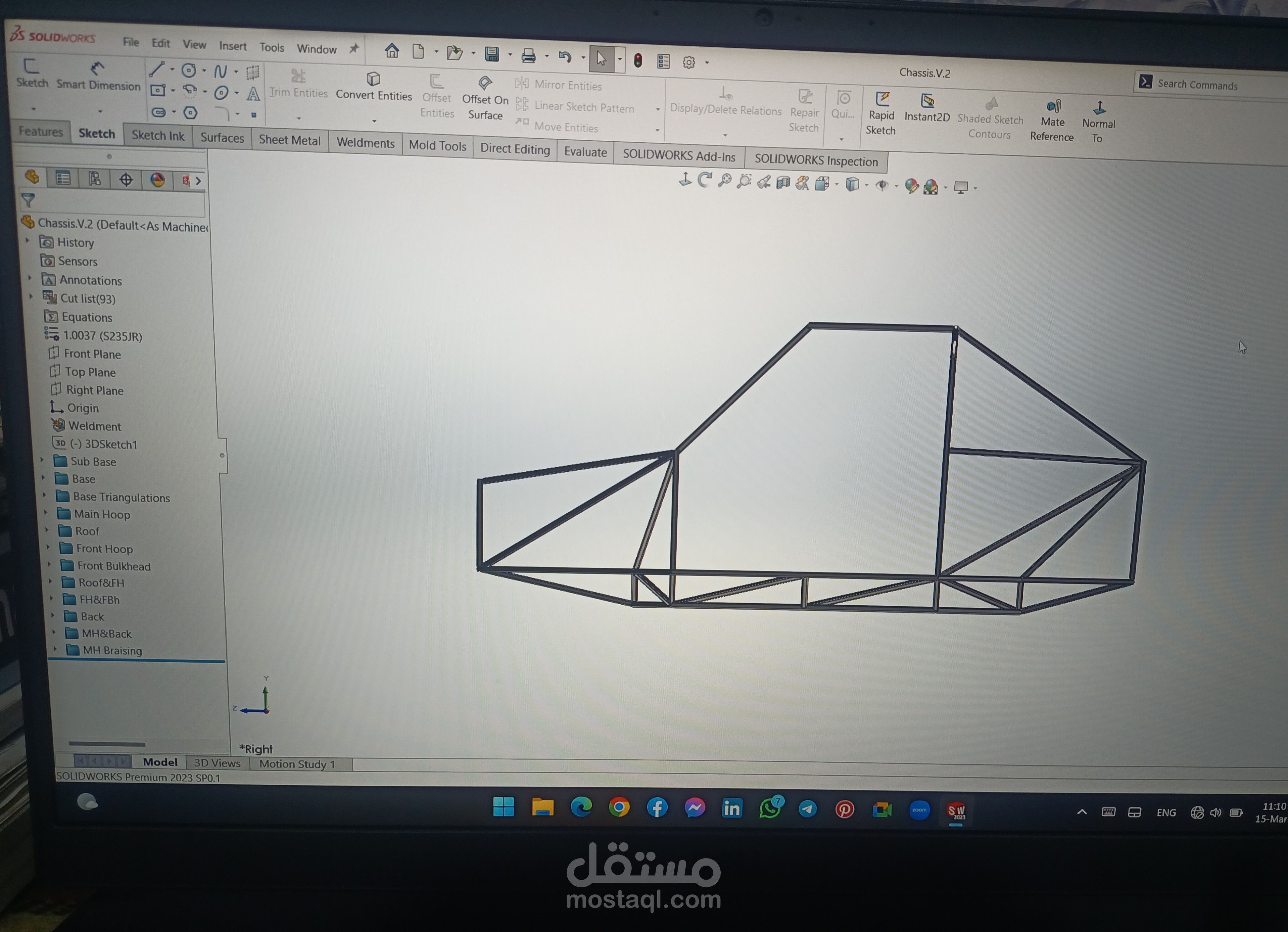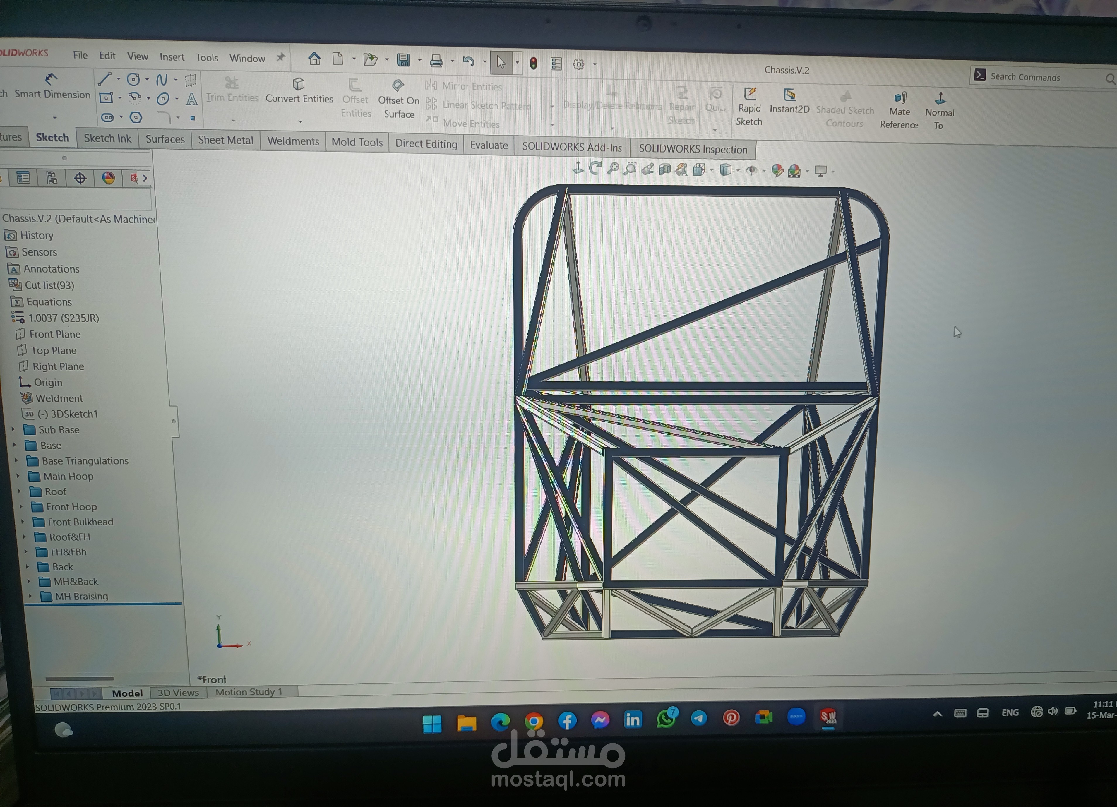 A Design of Space Frame Chassis for one seat racing car with a specific rules and dimensions for a competition using SolidWorks Weldment Module. The cross section of tube is a 20(mm)x20(mm)x2(mm) square tube made from steel37.
