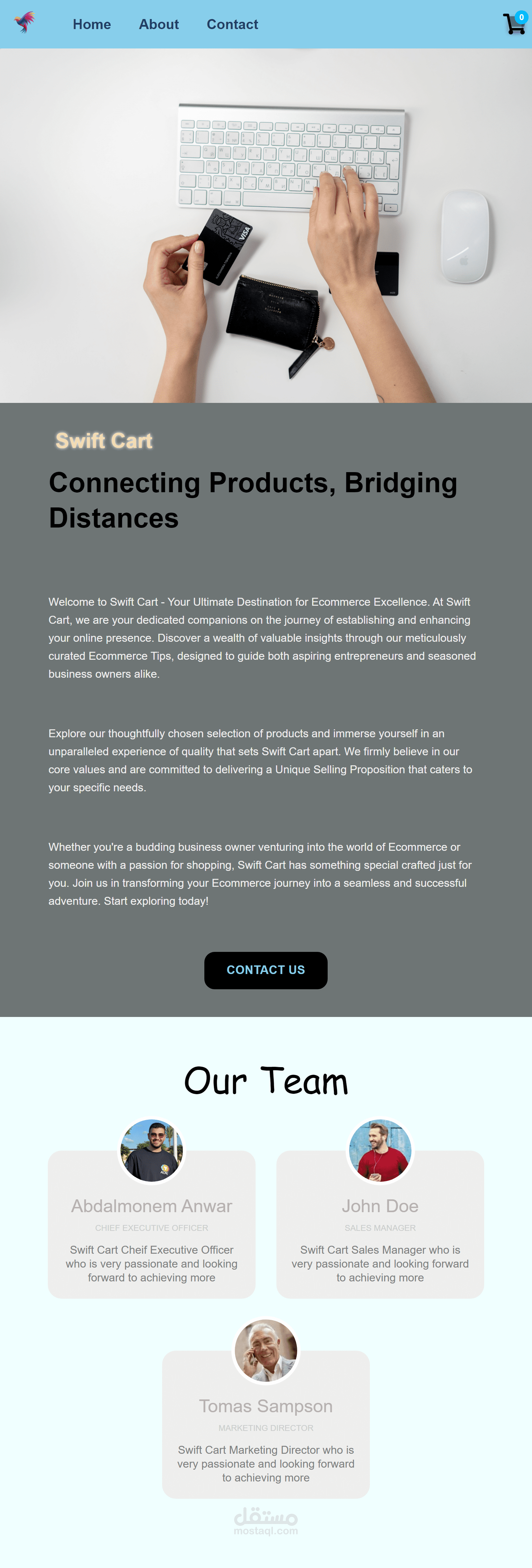 مشروع سويفت كارت ماركت هو مشروع تجارة إلكترونية تم تطويره باستخدام جافا سكريبت للواجهة الأمامية. يهدف هذا المشروع إلى توفير منصة بسيطة وفعالة للتسوق عبر الإنترنت، مع تصميم متجاوب لتجربة مستخدم مثالية.