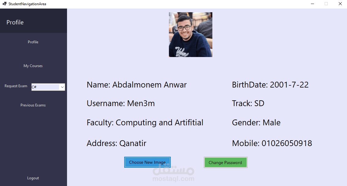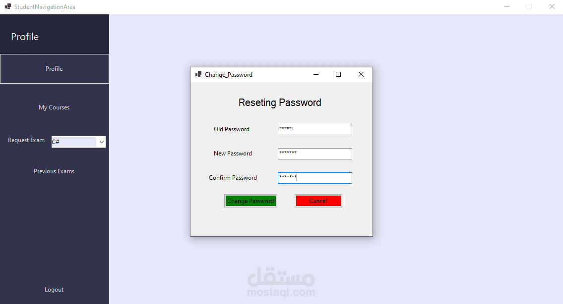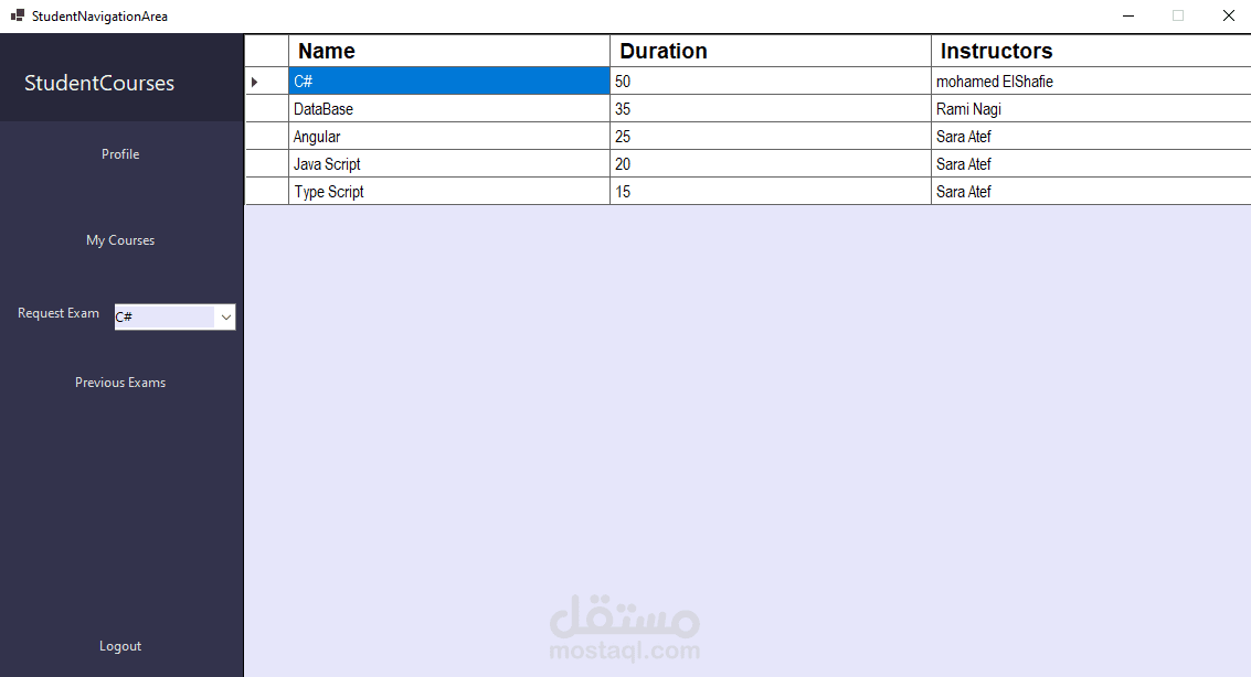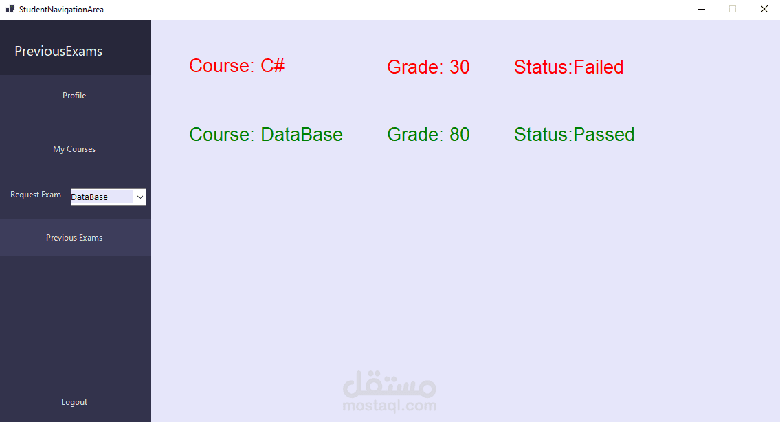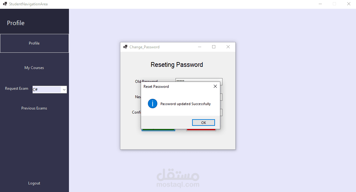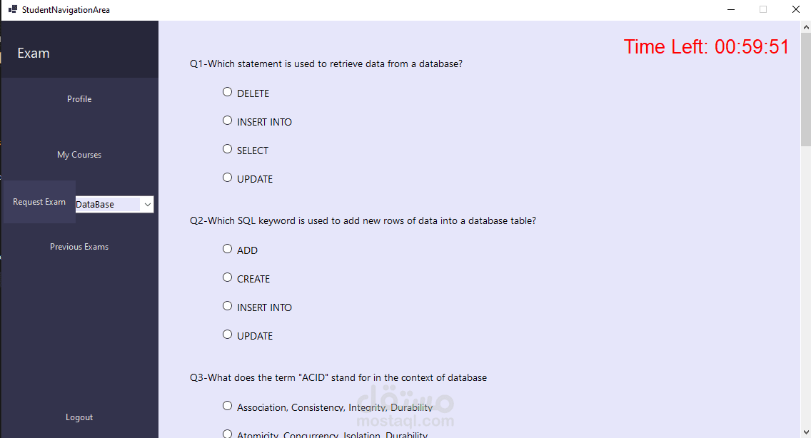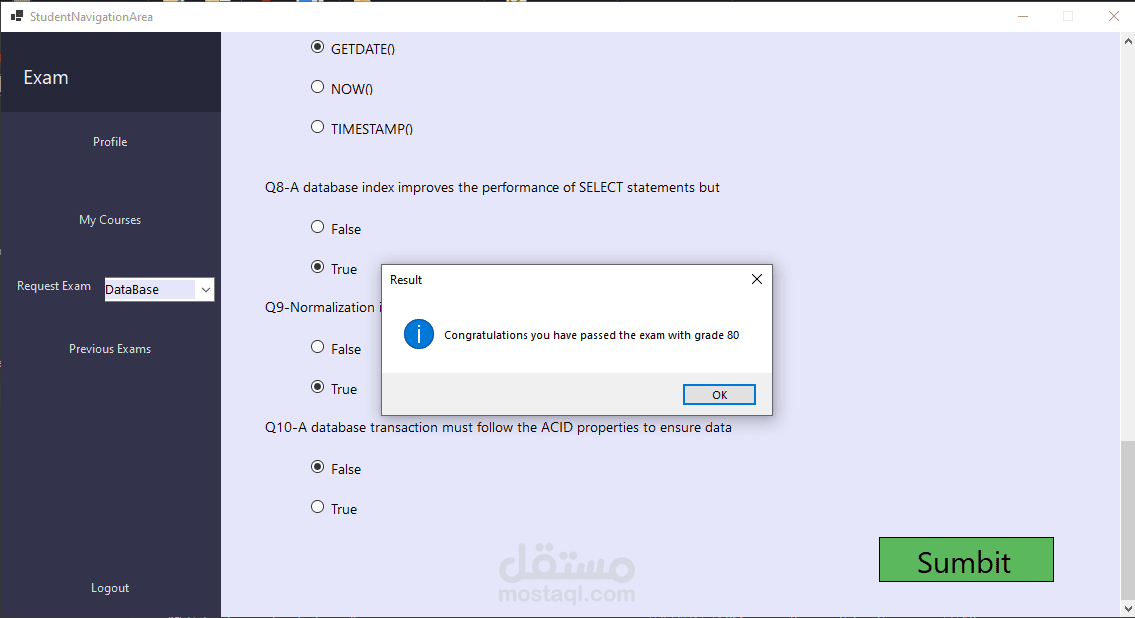 هذا هو نظام الامتحان الذي تم تطويره باستخدام C# و Windows Forms.
