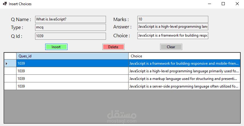 - إدخال الأسئلة والأجوبة: يمكن للمدرسين إضافة أسئلة مع الخيارات والأجوبة الصحيحة.