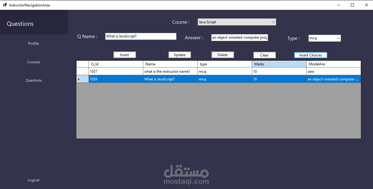 - أدوار المدرسين: المدرسون لديهم وظائف إضافية بما في ذلك إدخال الأسئلة والأجوبة الصحيحة، وعرض دوراتهم.