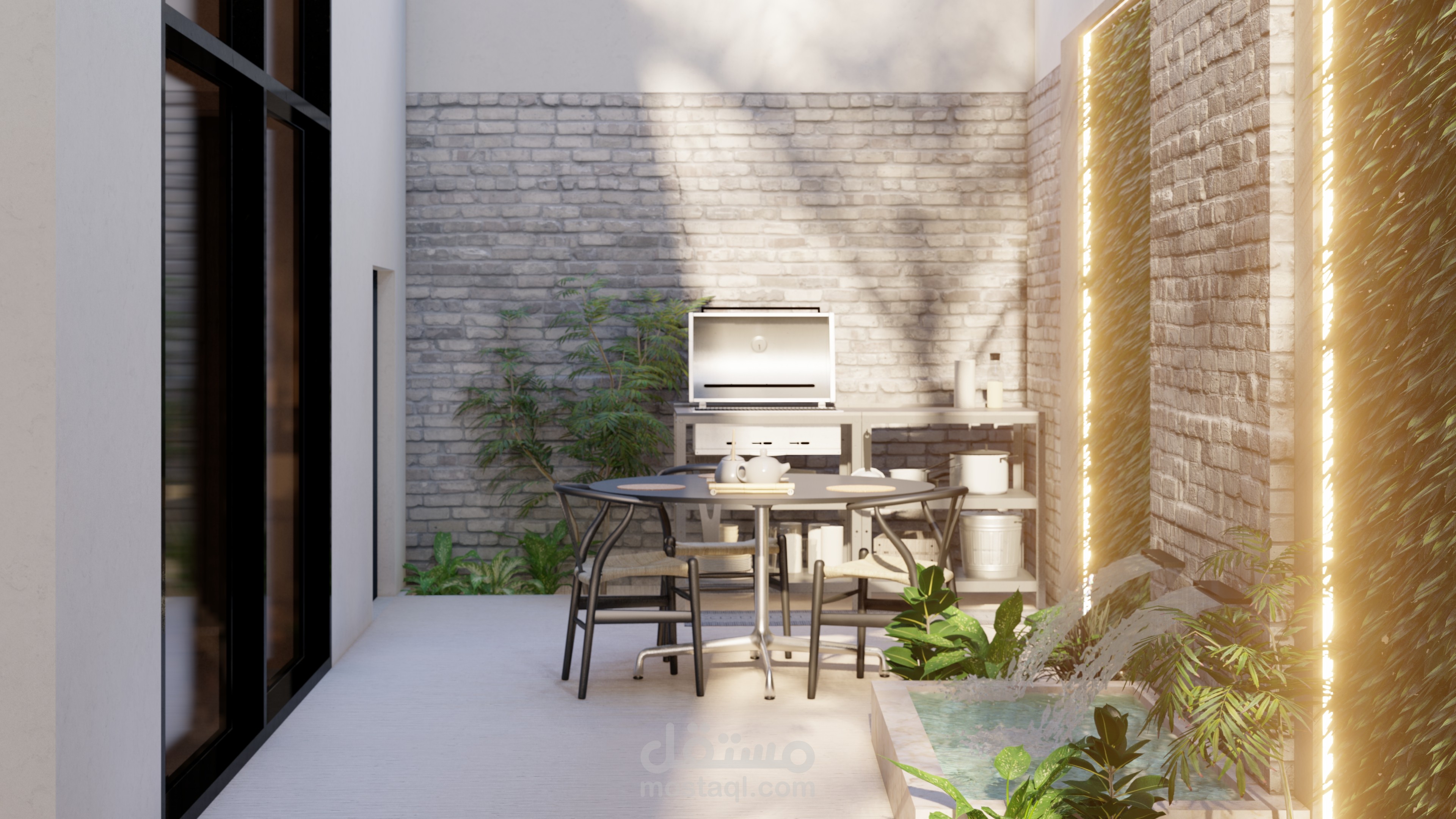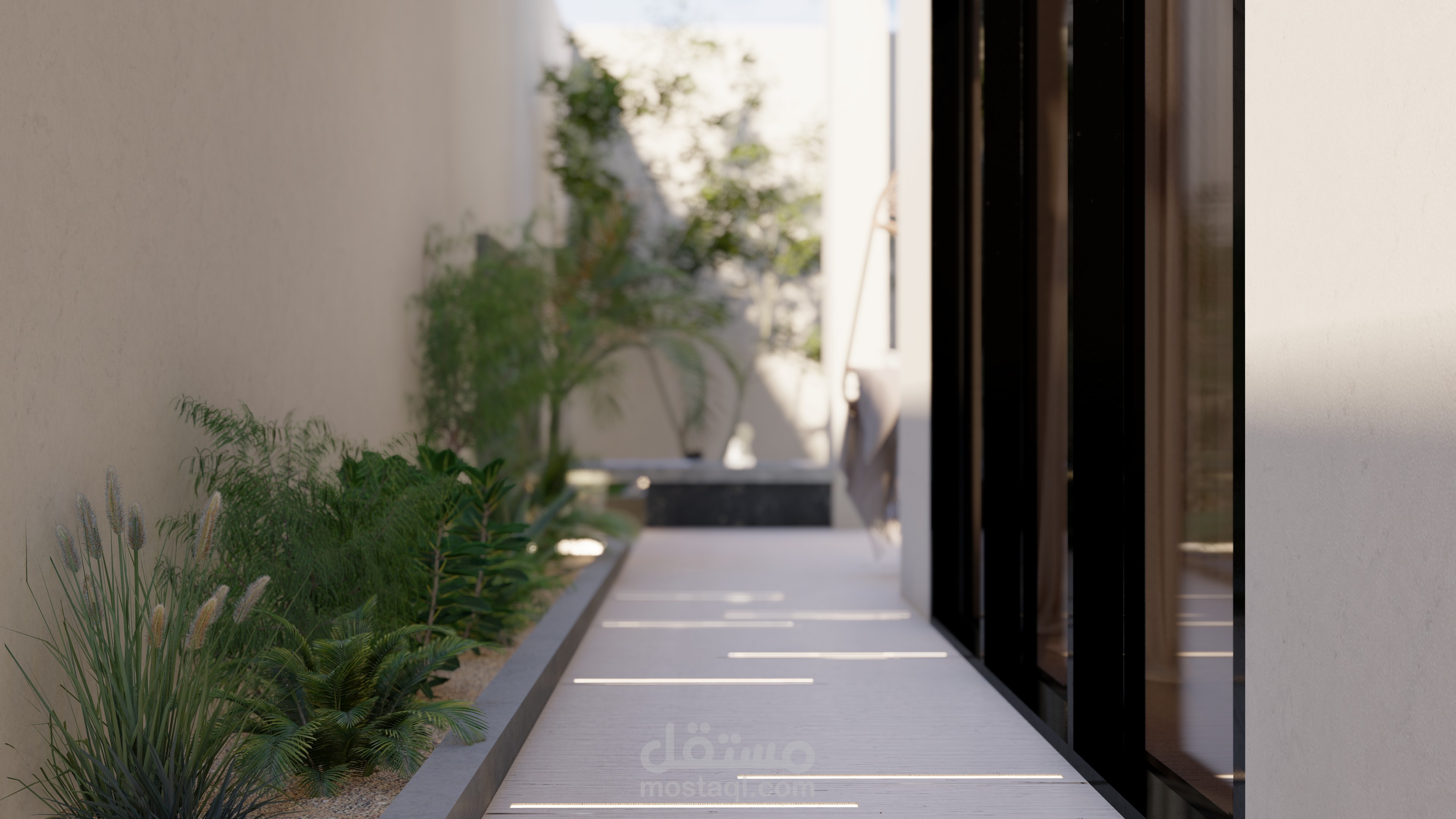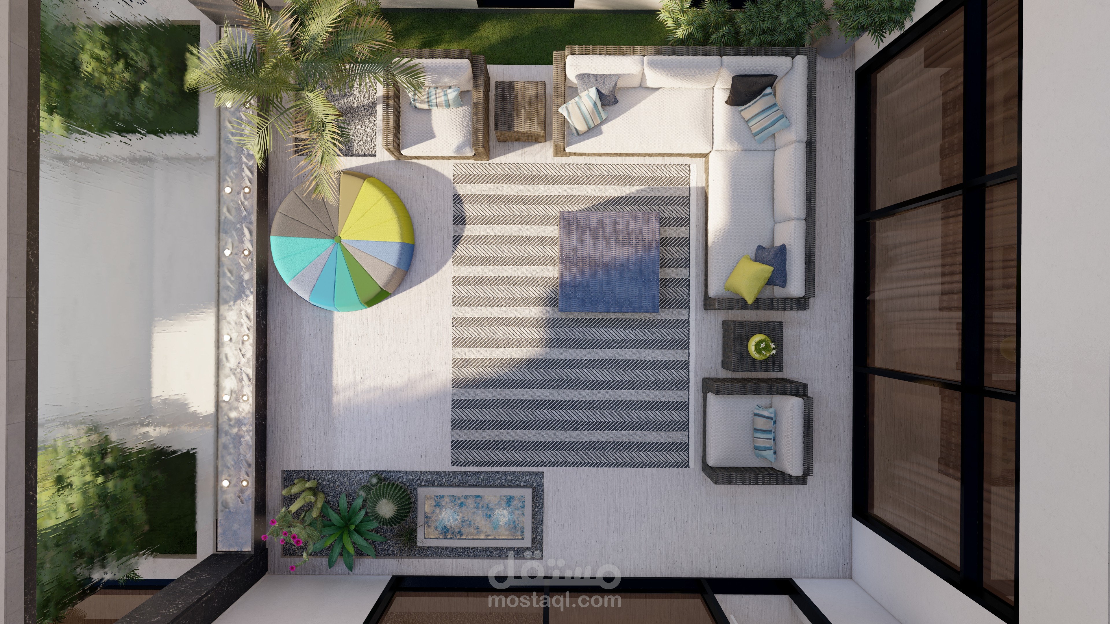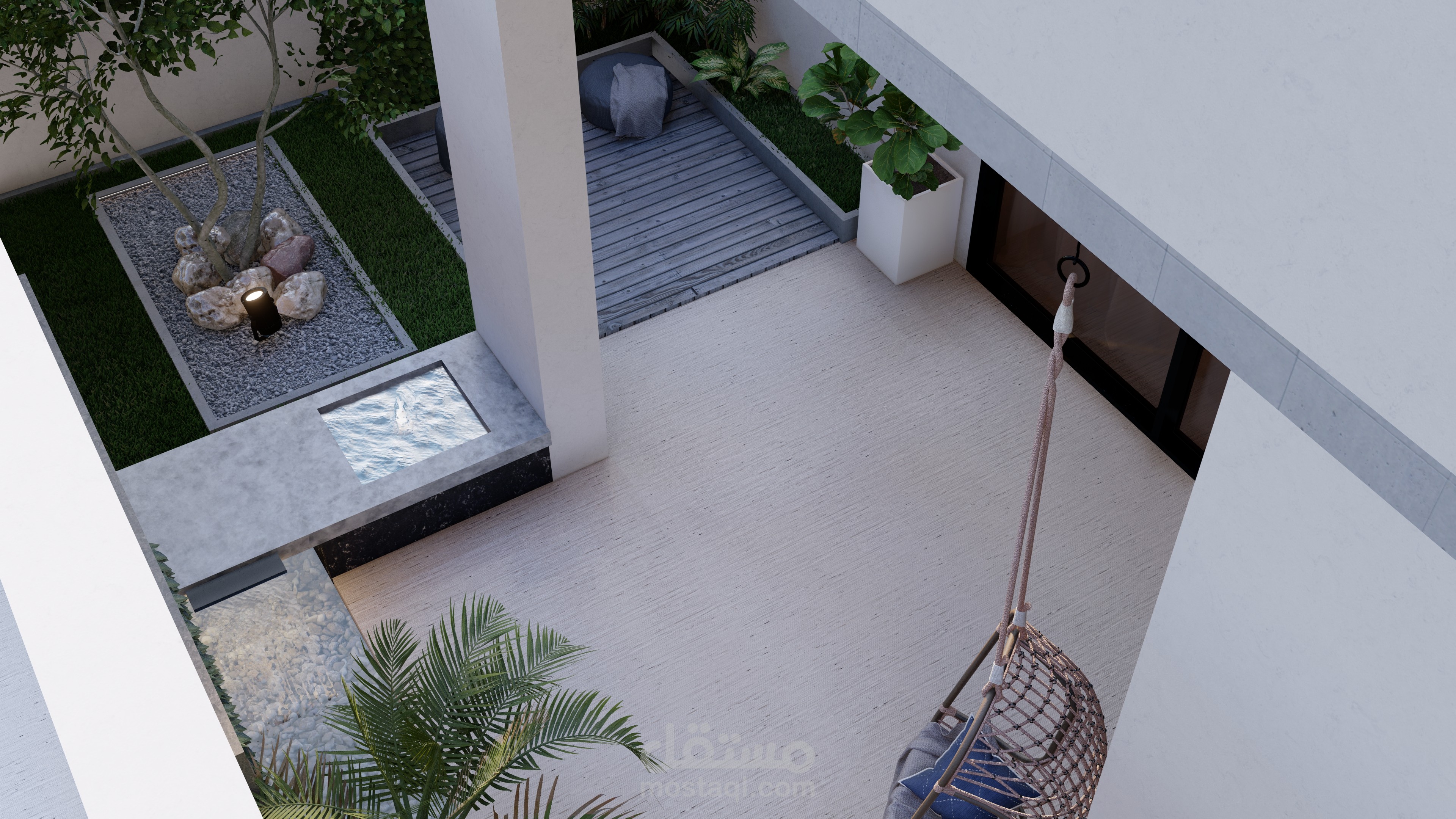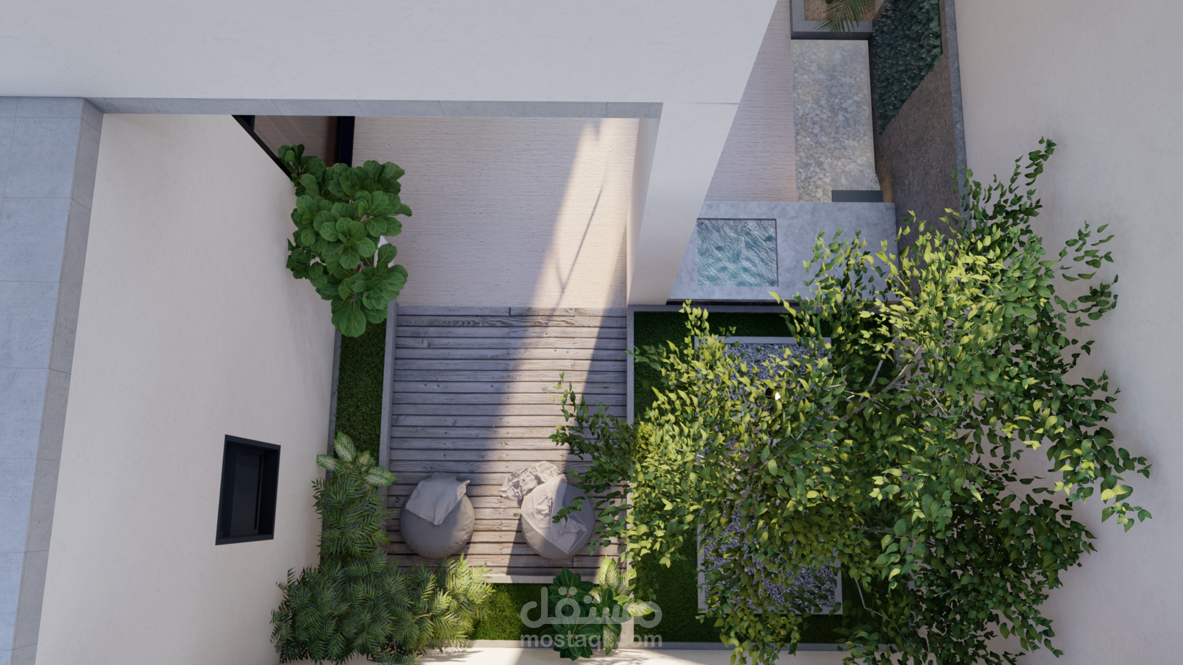 لاندسكيب لفيلا مقسم لثلاث مناطق منهم فناء داخلي