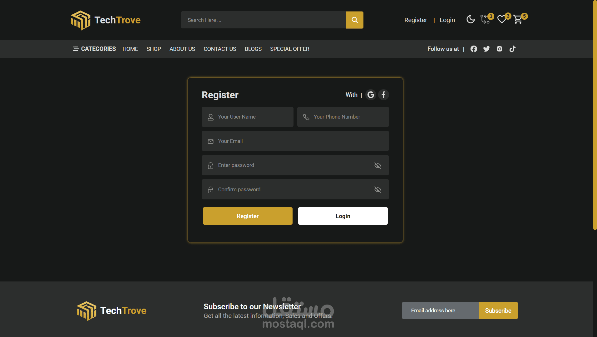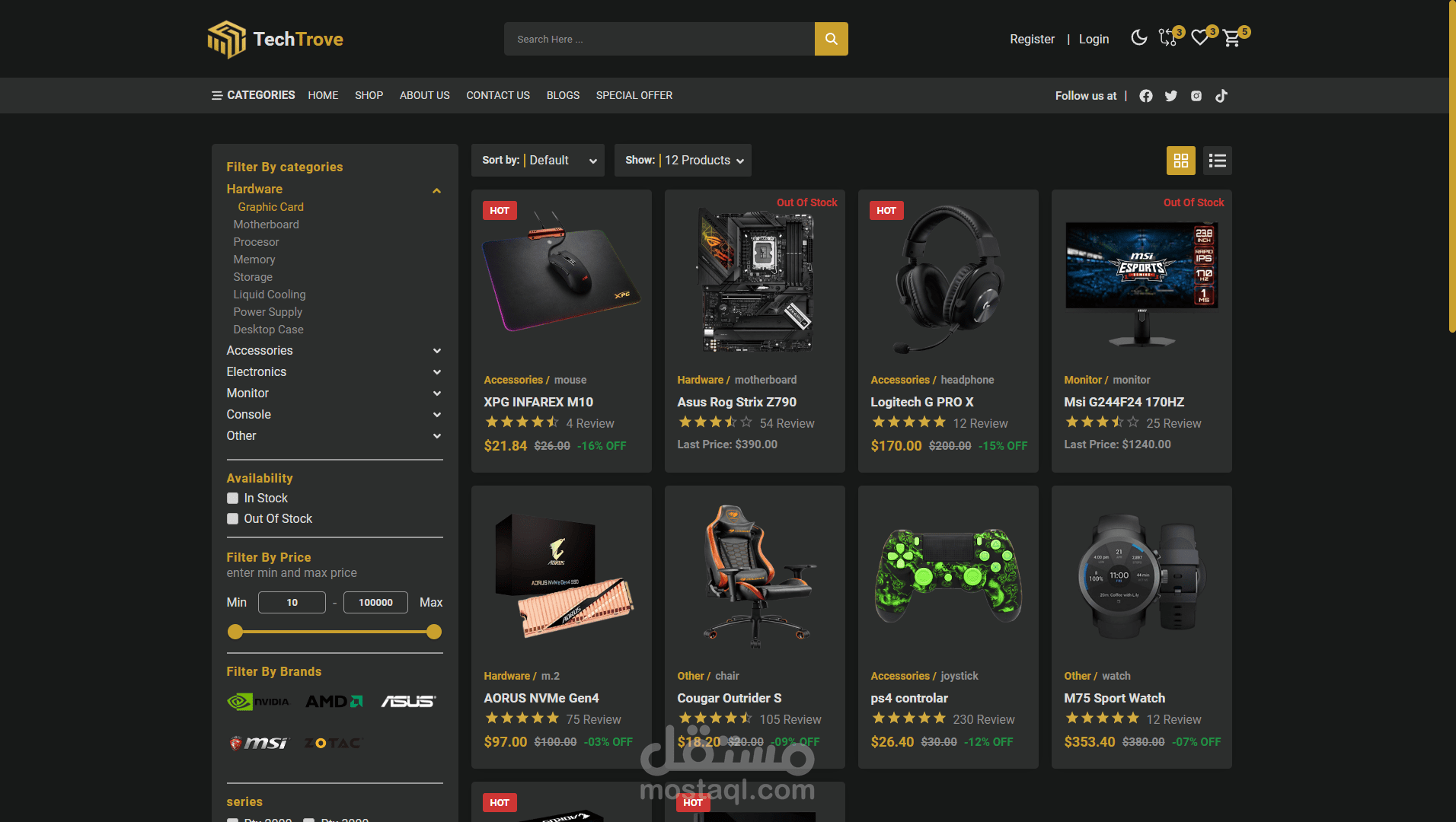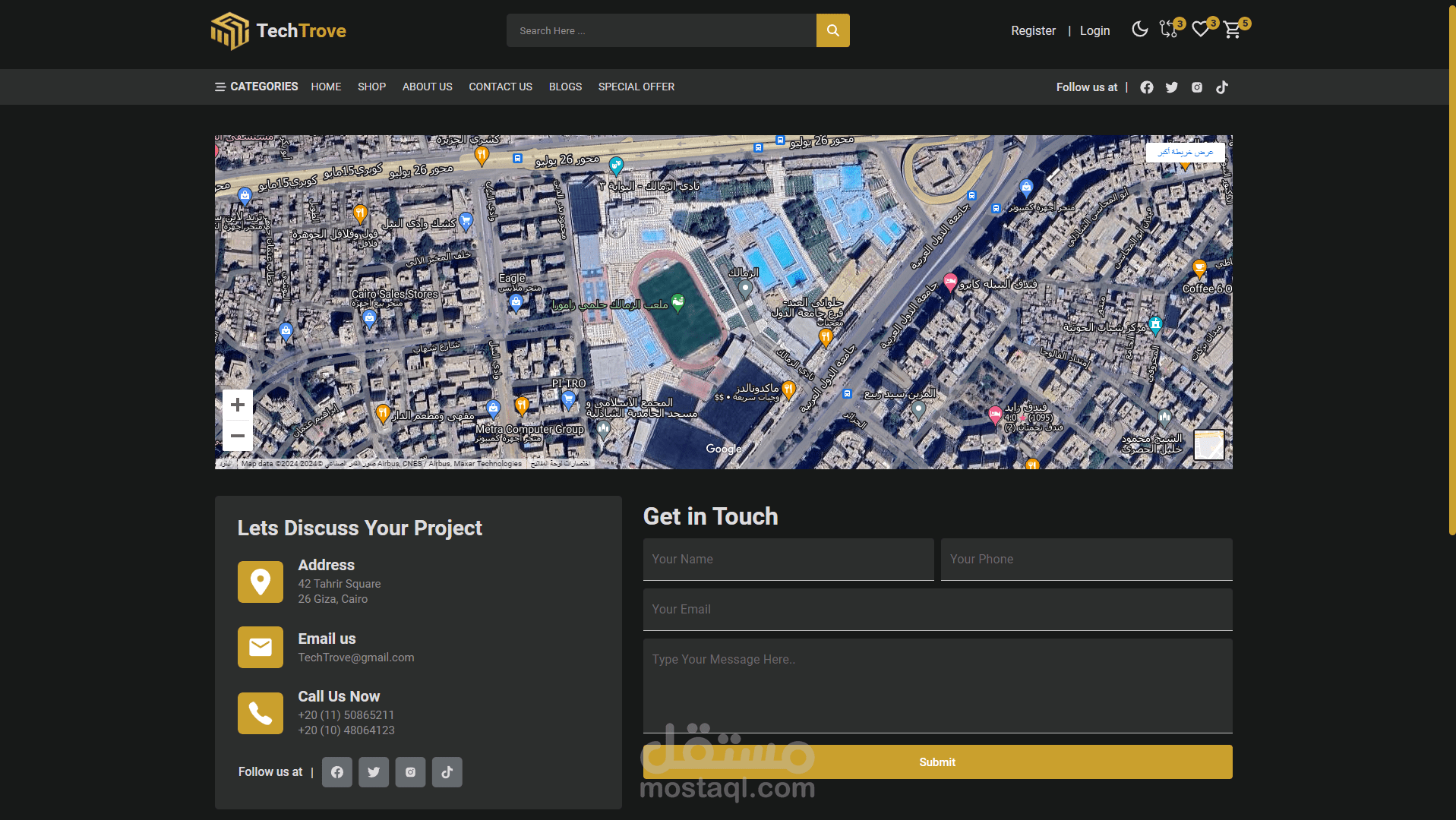 منصة تجارة إلكترونية بواجهة مستخدم احترافية، تتضمن:
